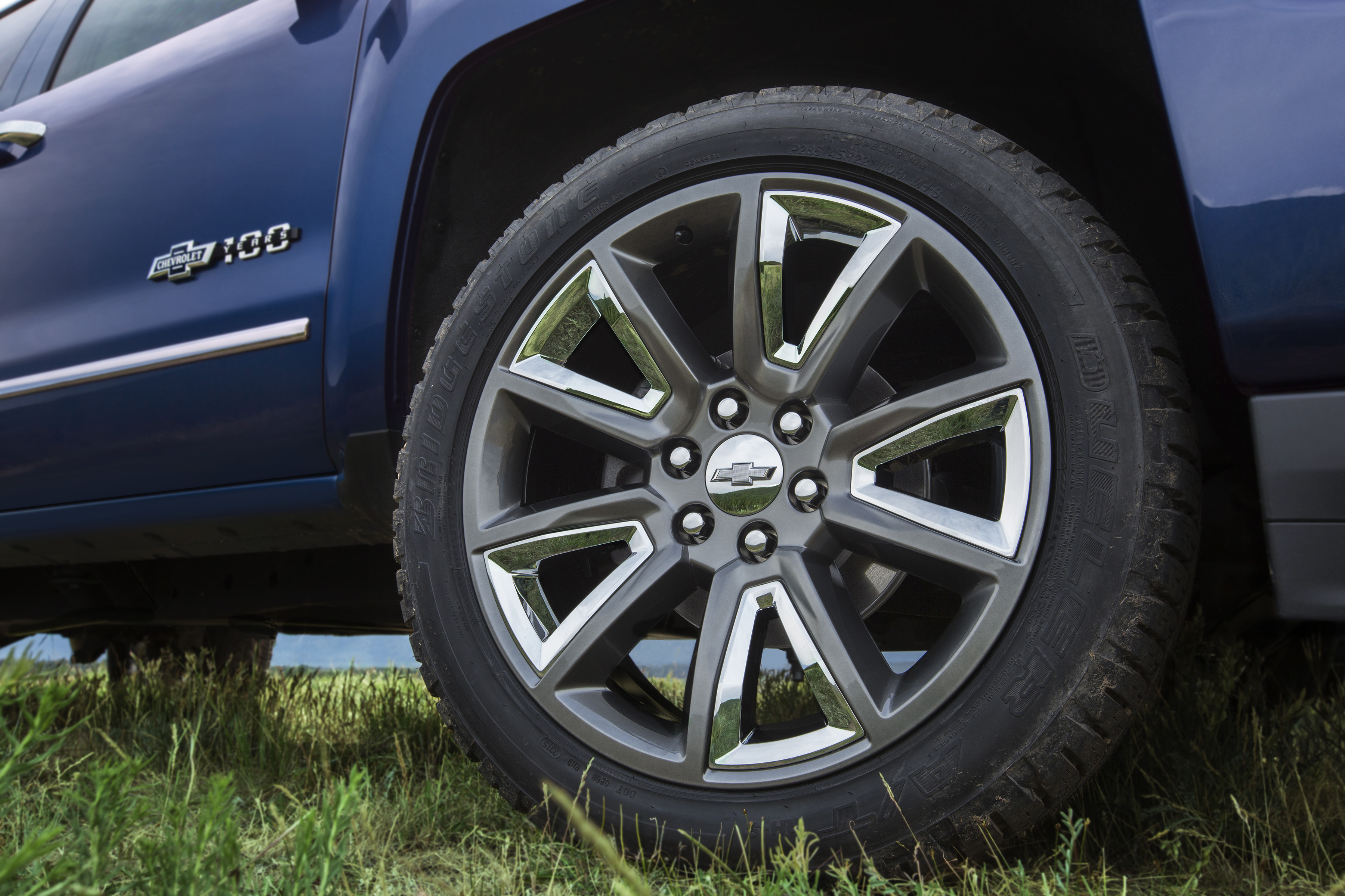 2018 Centennial Edition Silverado includes 22” all-terrains tires with painted wheels and chrome inserts.
