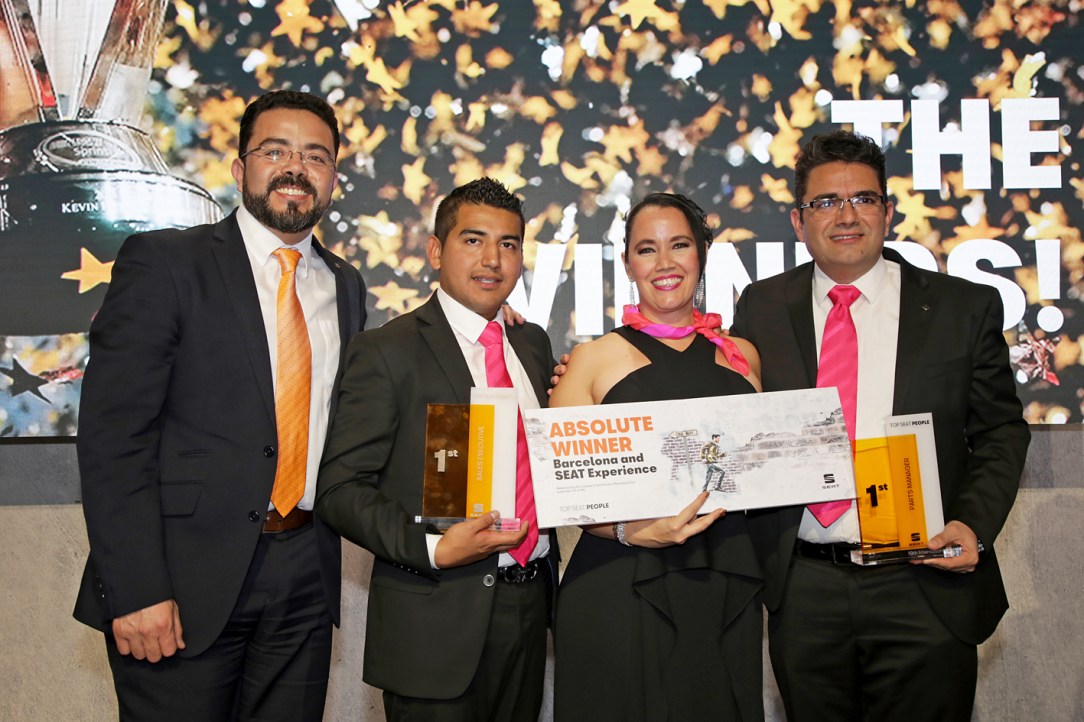 concesionarios de SEAT en México; tres de ellos lograron colocarse en los primeros lugares de tres categorías: Gerente de Refacciones, Francisco Gónzalez; Ejecutivo de Ventas, Eduardo Gutiérrez; y Virginia del Carmen Hernández, Gerente de Postventa que por su desempeño se adjudicó el premio especial “Ganador absoluto” del área de Postventa.