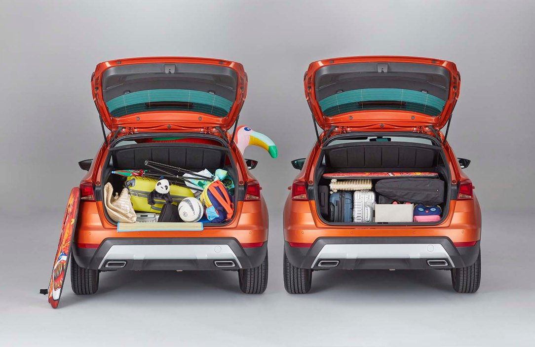 - En la cajuela, los últimos serán los primeros: El primer paso antes de colocar el equipaje es aprovechar el doble piso de modelos como el SEAT Arona. Conviene pensar en lo que necesitaremos sacar primero para dejarlo en la zona más accesible. A la hora de poner las maletas, las más pesadas siempre deben ir abajo y cuanto más atrás mejor, menciona Javier Delgado, ingeniero de Seguridad Pasiva de SEAT. “Si no ponemos correctamente los paquetes o los fijamos bien, un frenazo o una maniobra brusca pueden provocar que se desplacen o puedan salir disparados comprometiendo nuestra seguridad”, afirma ya que “circulando a 100km/h, en caso de un frenado brusco, un paquete de 30kg podría convertirse en uno de 90kg, multiplicando su peso por tres”. Si además los colocamos con las asas hacia arriba, también será más práctico.