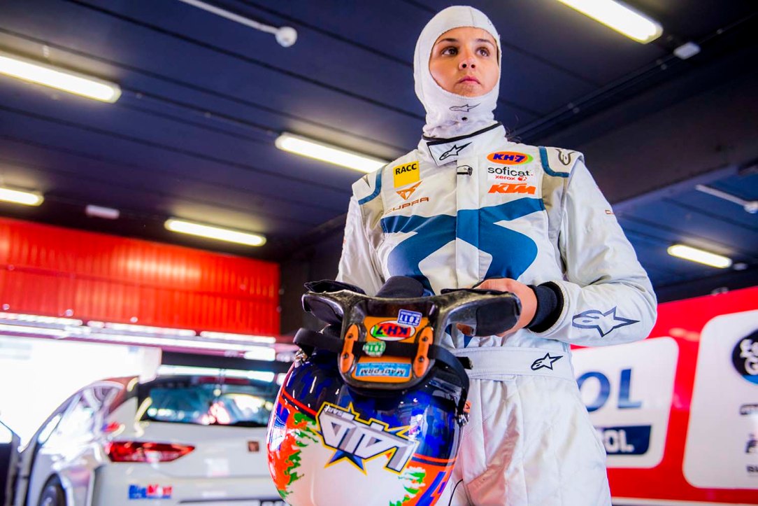 - Sensaciones sobre la pista: De 0 a 100Km/h en 5.2 segundos. Así empieza la piloto su entrenamiento sobre la pista al volante del CUPRA TCR. “Es un vehículo ágil y divertido de conducir y, al mismo tiempo, trasmite mucha sensación de seguridad. La frenada es buenísima”, comenta mientras empieza a adaptarse al que será su nuevo aliado de cuatro ruedas.