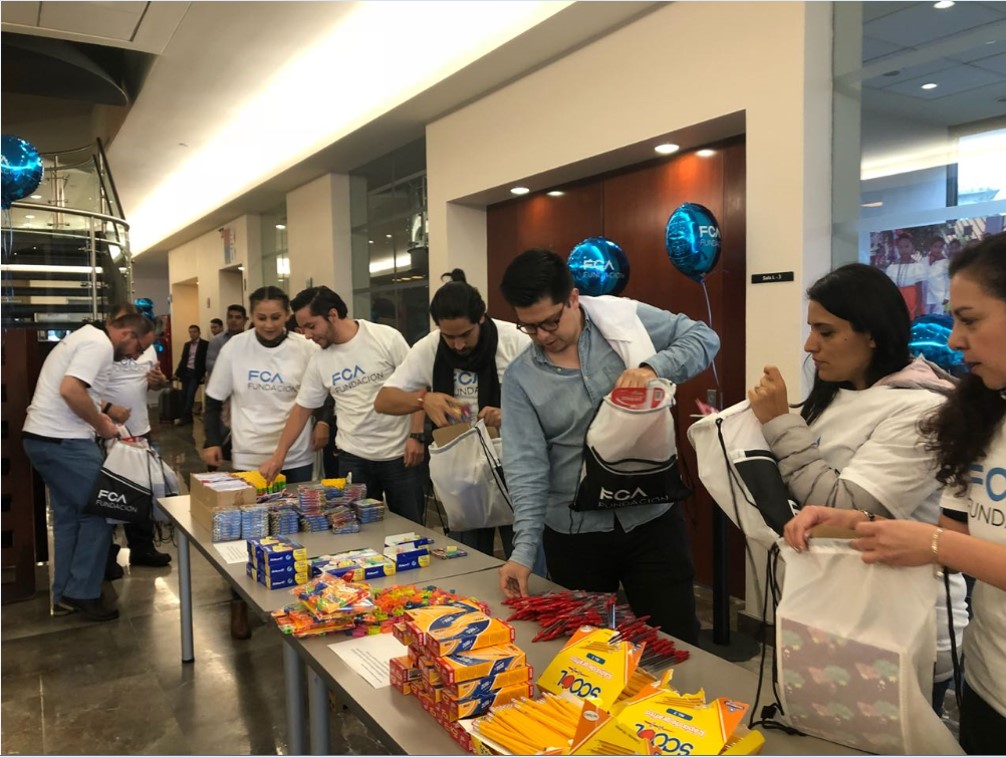 Para apoyar el ciclo escolar 2018-2019 a niños de escasos recursos que regresan a clases, voluntarios de Fundación FCA en el Estado de Coahuila y en la Ciudad de México, ayudaron a empacar y entregar a través de “Fundación Lazos” y “Medicina y Asistencia Social”, 1,000 paquetes de útiles escolares para niños pertenecientes a municipios en Coahuila y Guerrero con alto índice de marginación y escasos recursos.