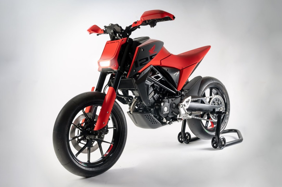La CB125M es una máquina naked de calle en un rojo brillante, con más de un toque de “super-motard” en su diseño. Las líneas futuristas son minimalistas y ultra afiladas, con una sección de asiento que se une de manera continua a la corta y alta cola, y una luz principal de LED minúscula.