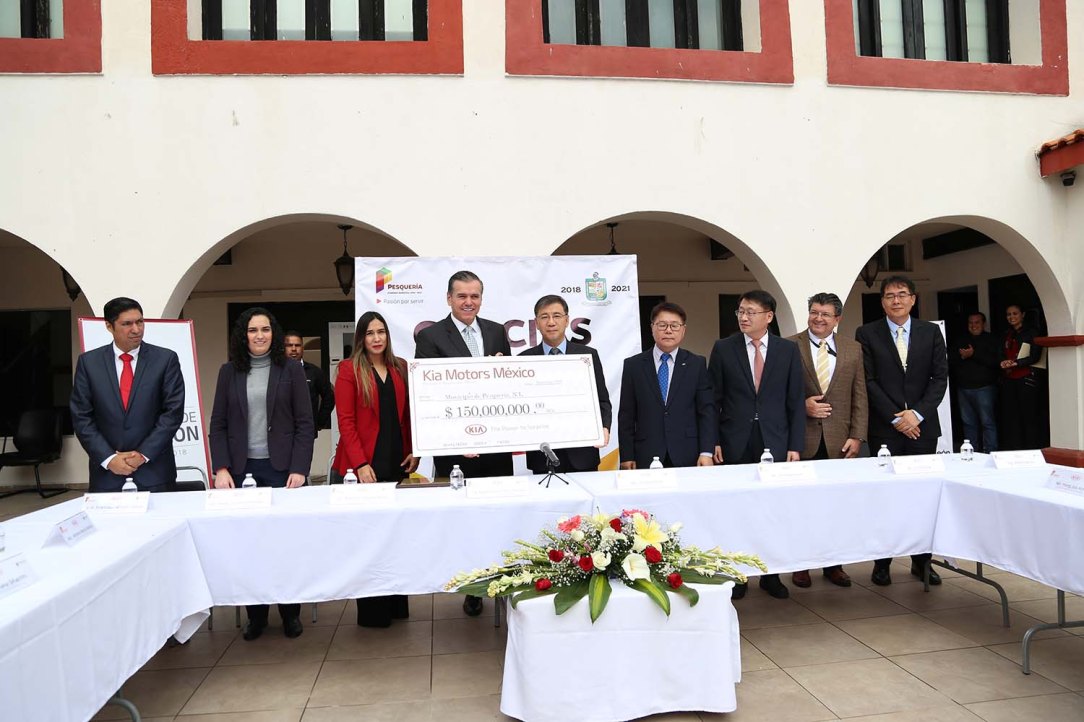 Con el objetivo de seguir apoyando el desarrollo regional en Nuevo León, KIA Motors México concreta una donación al Municipio de Pesquería por 150 millones de pesos. Los recursos tienen el objetivo de desarrollar infraestructura pública en este municipio así como seguir cumpliendo con el contrato de colaboración entre KIA Motors, el Gobierno del estado de Nuevo León y el municipio de Pesquería.