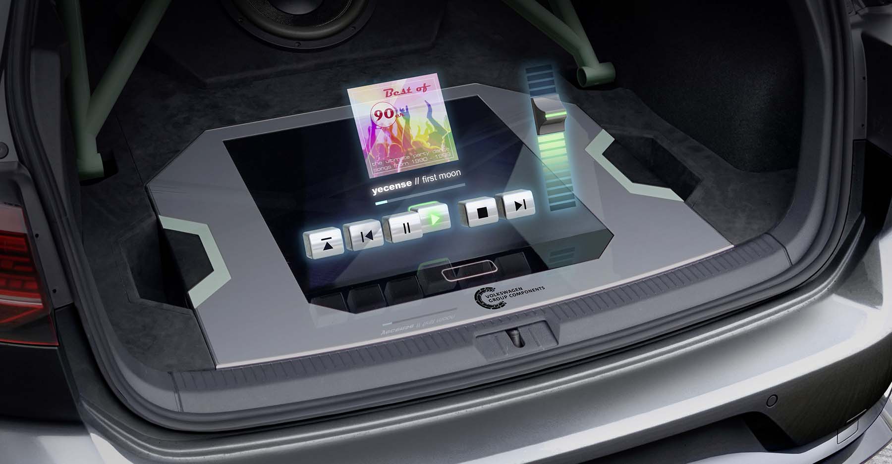 The compact hologram module, featuring floating controls that can be used to operate the high-end sound system, was developed by Group Components and installed in the luggage compartment.