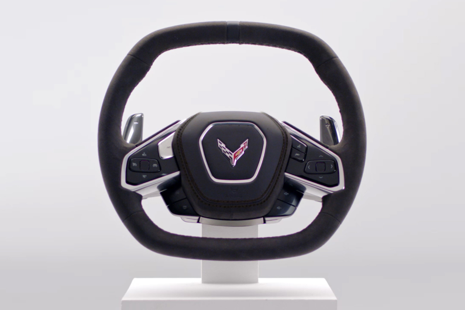 Just as the eighth generation defines the Corvette formula, so does its steering wheel with its leather-wrapped, squared-off shape to enhance visibility and comfort. Also notable is its contrasting stitching and beautifully integrated controls. Preproduction model shown. Actual production model may vary. Availability to be announced at a later date.