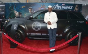 Actor Samuel L. Jackson with militarized Acura MDX at Marvel’s T