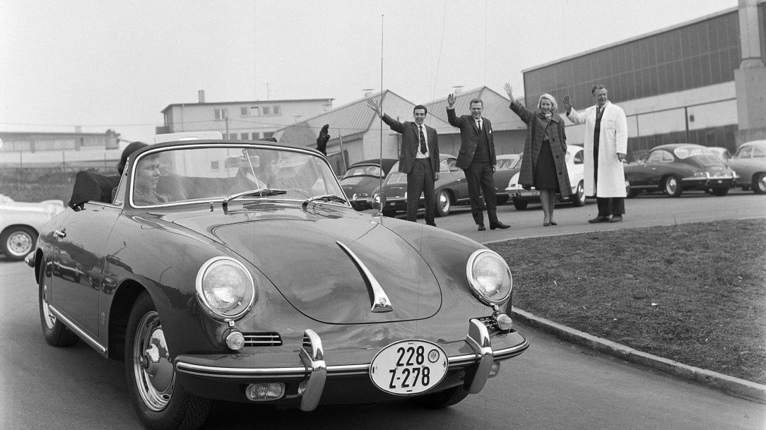 Antes de la ceremonia de entrega, Ottomar Domnick se subió al asiento del pasajero de su Porsche 356 junto al piloto Herbert Linge, que lo invitó a realizar la prueba final del vehículo. Herbert Linge inició su formación en Porsche KG en abril de 1943 y fue uno de los primeros mecánicos contratados después de que Porsche regresara desde Gmünd, en Austria, a finales de 1949. “Tenía 14 años cuando empecé a trabajar en el primer taller de formación de Porsche. En aquellos momentos, éramos seis mecánicos y dos delineantes. Ferdinand Porsche paseaba a menudo por nuestro taller acompañado de invitados importantes. Siempre se paraba a saludarnos mientras sus invitados esperaban brevemente. Es algo que nunca olvidaré”, comenta Herbert Linge, que recuerda con claridad cada coche entregado en fábrica. “Cuando Ottomar Domnick vino a por su Porsche 356 se mostraba entusiasmado, aunque ya había estado yendo antes cada día para ver cómo íbamos con el trabajo. Incluso Ferry Porsche estuvo presente un rato mientras se le daba al médico su deportivo”.