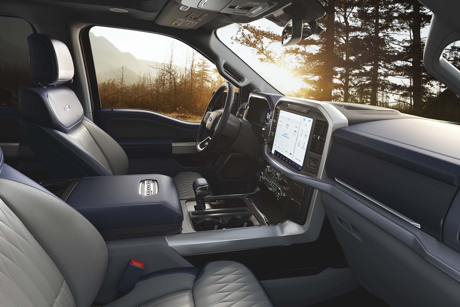 The cabin is completely redesigned with more comfort, technology and functionality for truck customers along with more premium materials, more color choices and more storage. Shown here is the interior of the all-new F-150 Limited.