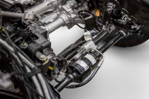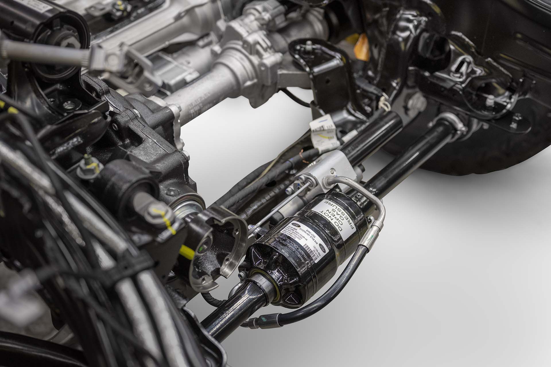 Available segment-exclusive semi-active hydraulic stabilizer bar disconnect provides maximum articulation and increased ramp angle index for off-camber terrain. This innovative system bests competitors by disconnecting during articulation.