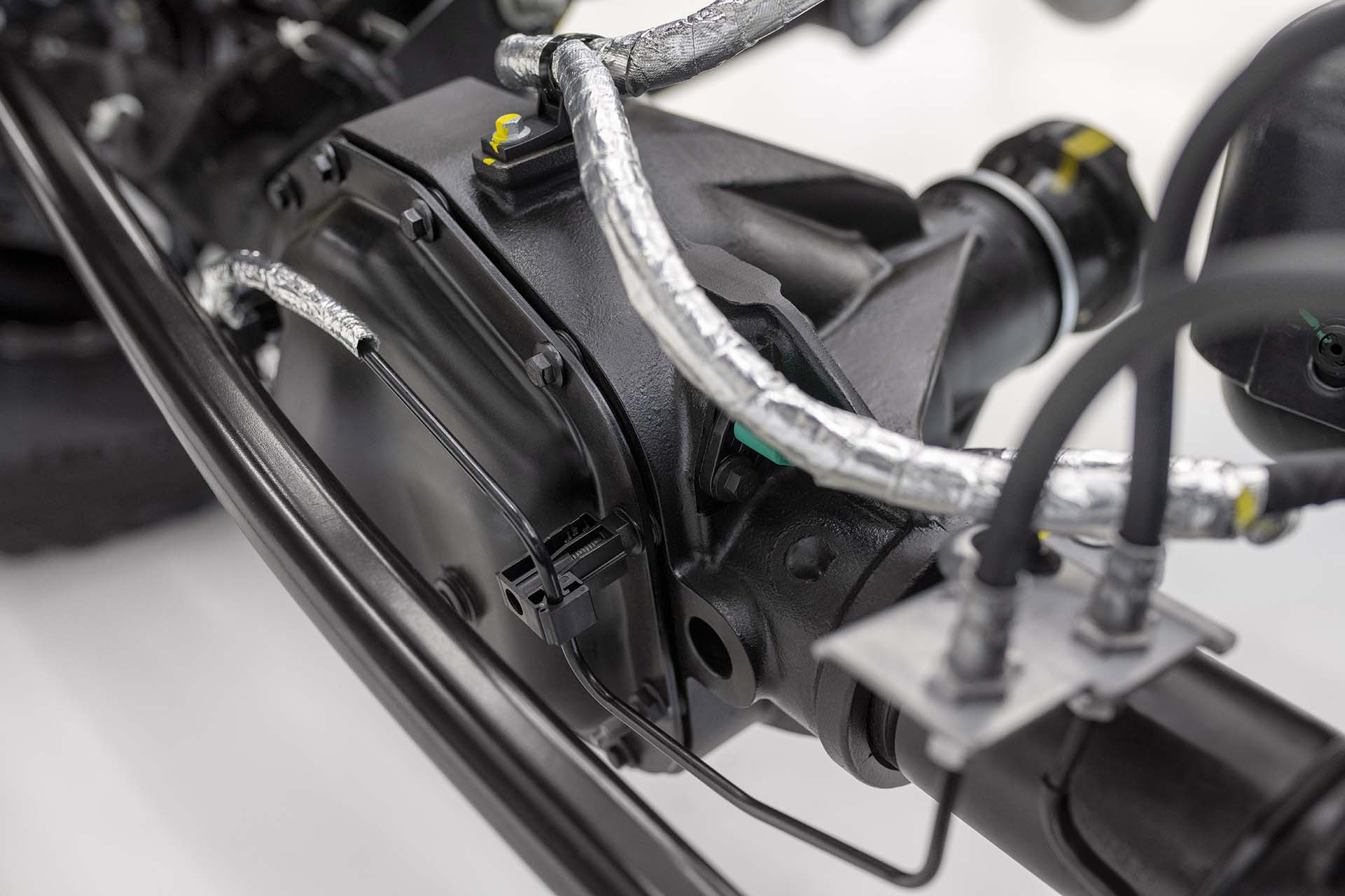 Dana 44 AdvanTEK solid rear axle with available Spicer Performa-TraK electronic locking differential for improved traction over rough terrain.