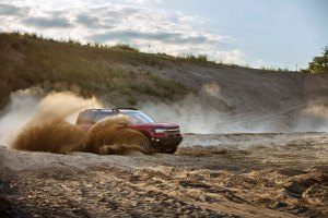 The all-new Bronco Sport enables exciting, high-speed off-road driving thanks to an available 2.0-liter EcoBoost® engine with segment-best horsepower and torque. (Pre-production model pictured.)