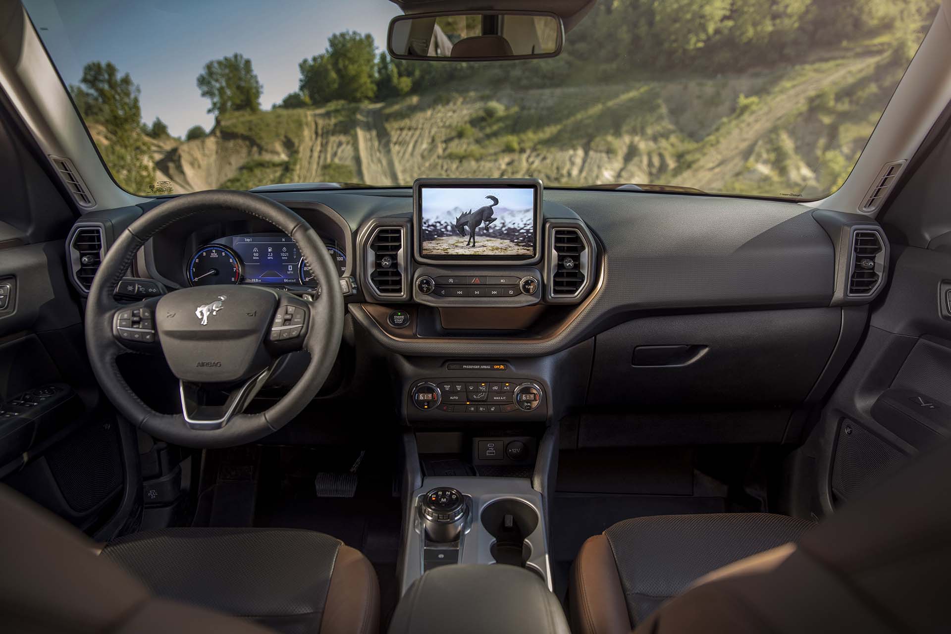 The all-new Bronco Sport small SUV comes standard with SYNC® 3 and an 8-inch touchscreen, which includes compatibility with Apple CarPlay™ and Android Auto™. (Pre-production model pictured.)