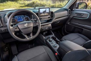 The all-new Bronco Sport small SUV comes standard with SYNC® 3 and an 8-inch touchscreen, which includes compatibility with Apple CarPlay™ and Android Auto™. (Pre-production model pictured.)