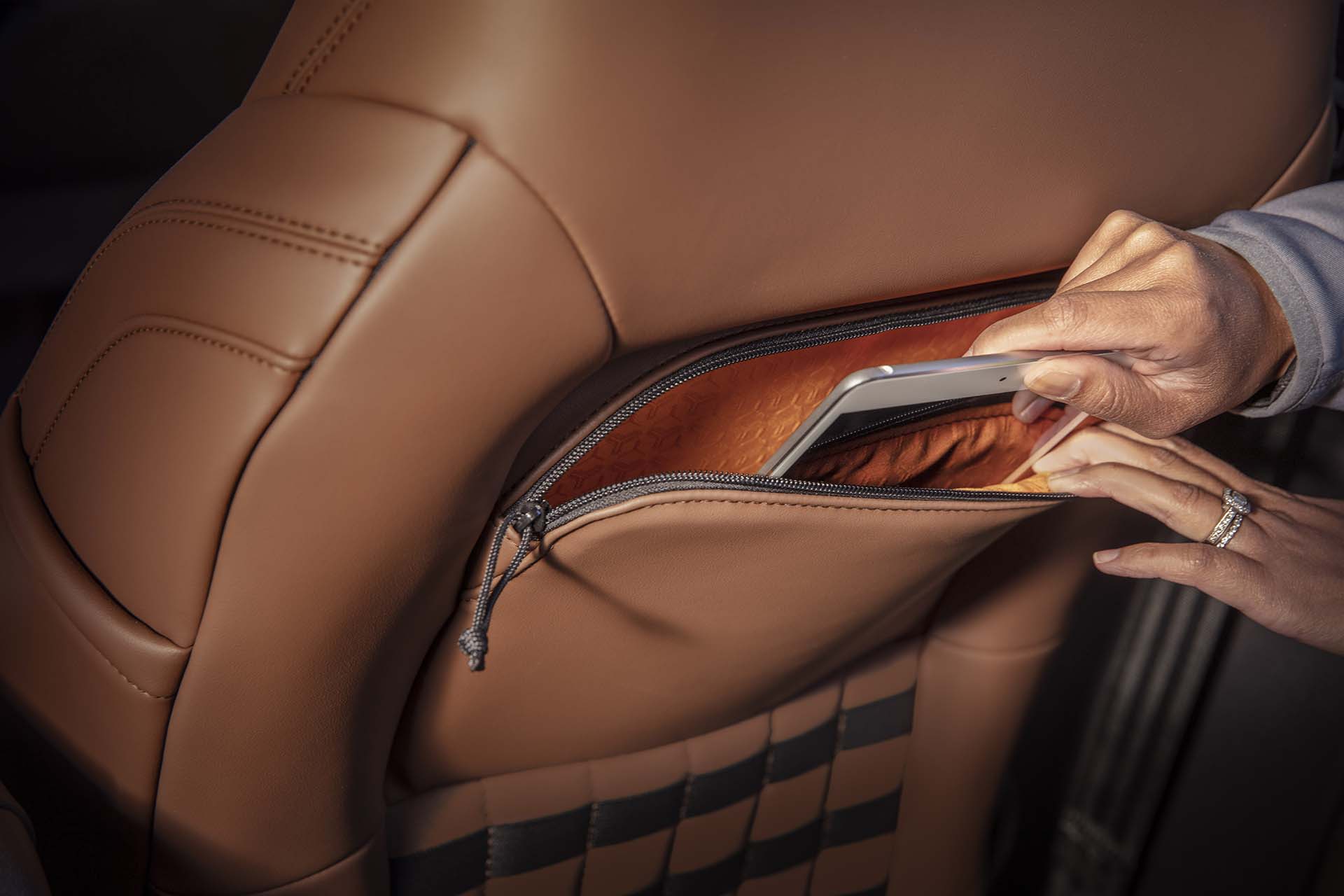 Some human-centered design features in the all-new Bronco Sport include available class-exclusive zipper pockets on the seatbacks to help users safely and easily transport gear. (Pre-production model pictured.)