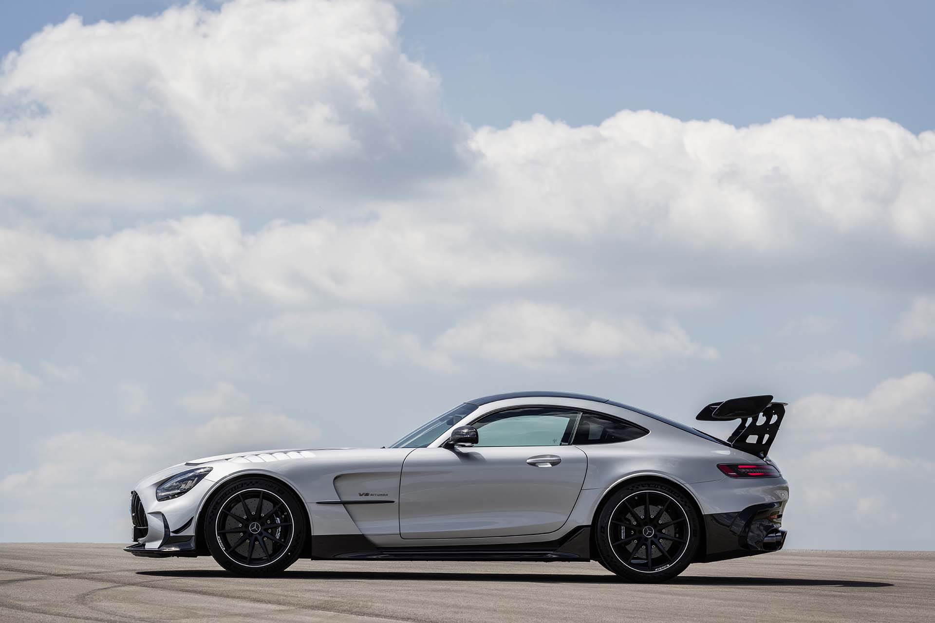 Mercedes-AMG GT Black Series (Kraftstoffverbrauch kombiniert: 12,8 l/100 km, CO2-Emissionen kombiniert: 292 g/km), 2020, Exterieur, Seite, hightechsilber