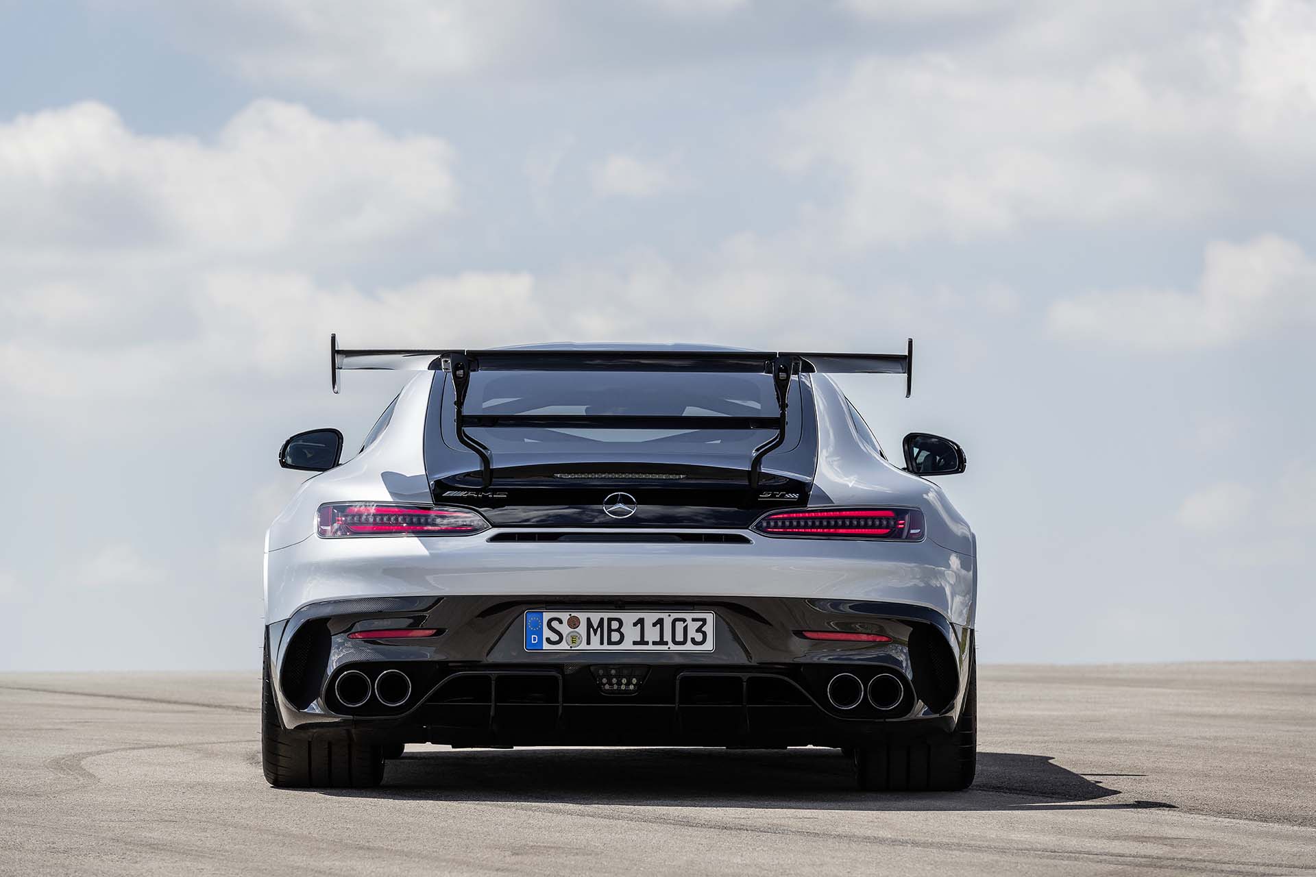 Mercedes-AMG GT Black Series (combined fuel consumption: 12,8 l/100 km, combined CO2 emissions: 292 g/km), 2020, Exterieur, rear, double rear wing, exhaust System, hightechsilver