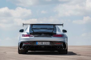 Mercedes-AMG GT Black Series (Kraftstoffverbrauch kombiniert: 12,8 l/100 km, CO2-Emissionen kombiniert: 292 g/km), 2020, Exterieur, Seite, Heck, doppelter Heckflügel, hightechsilber