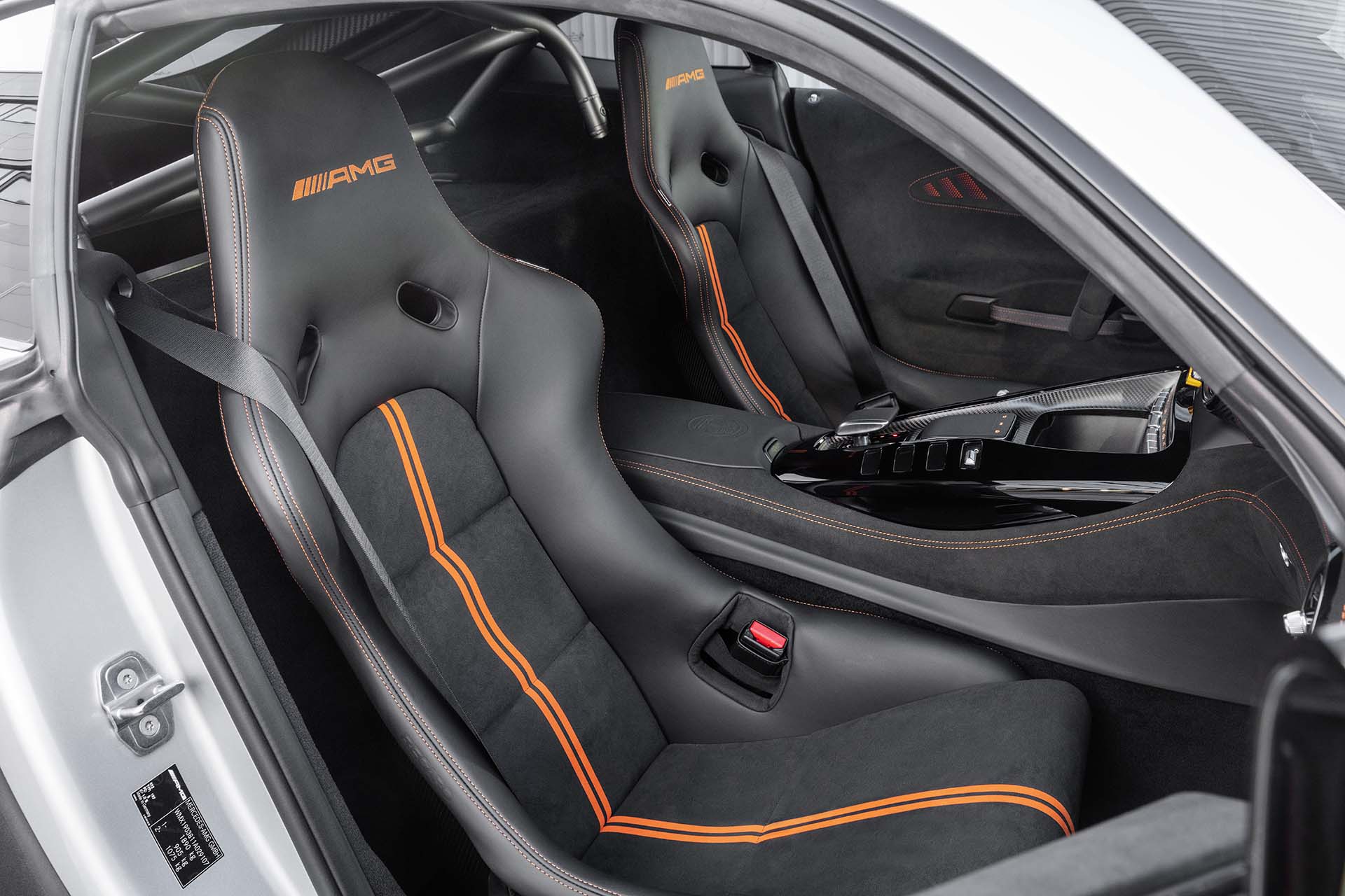 Mercedes-AMG GT Black Series (combined fuel consumption: 12,8 l/100 km, combined CO2 emissions: 292 g/km), 2020, Interieur, seat, AMG seat in carbon with orange contrast stitching