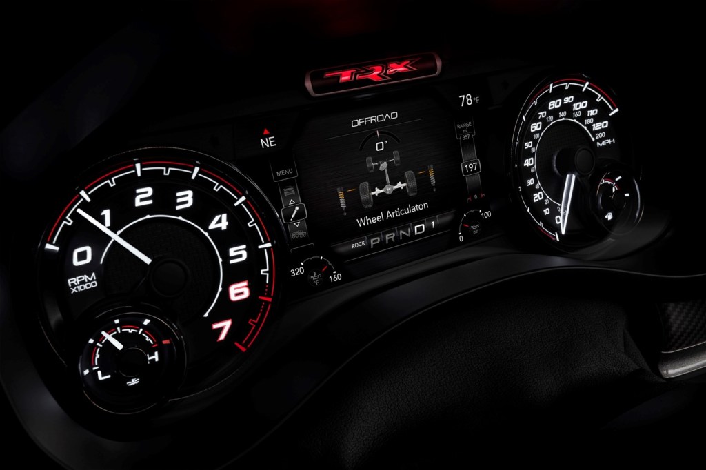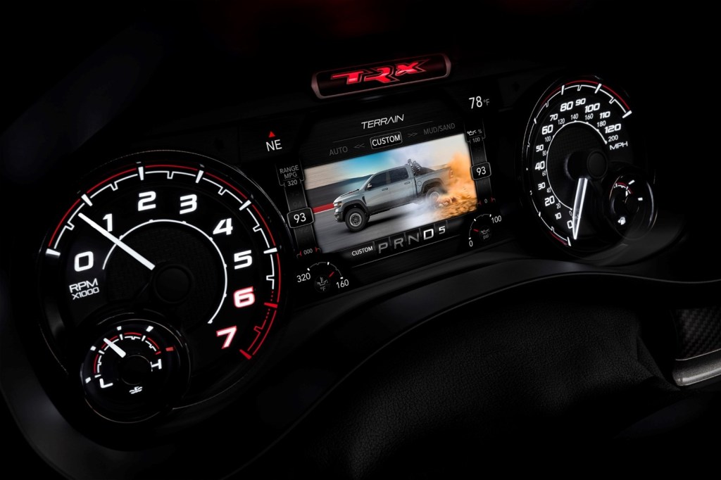 Como ayuda, la Ram TRX también incorpora una pantalla TFT de 7 pulgadas exclusiva del TRX con colores y gráficos únicos, y relojes reconfigurables.