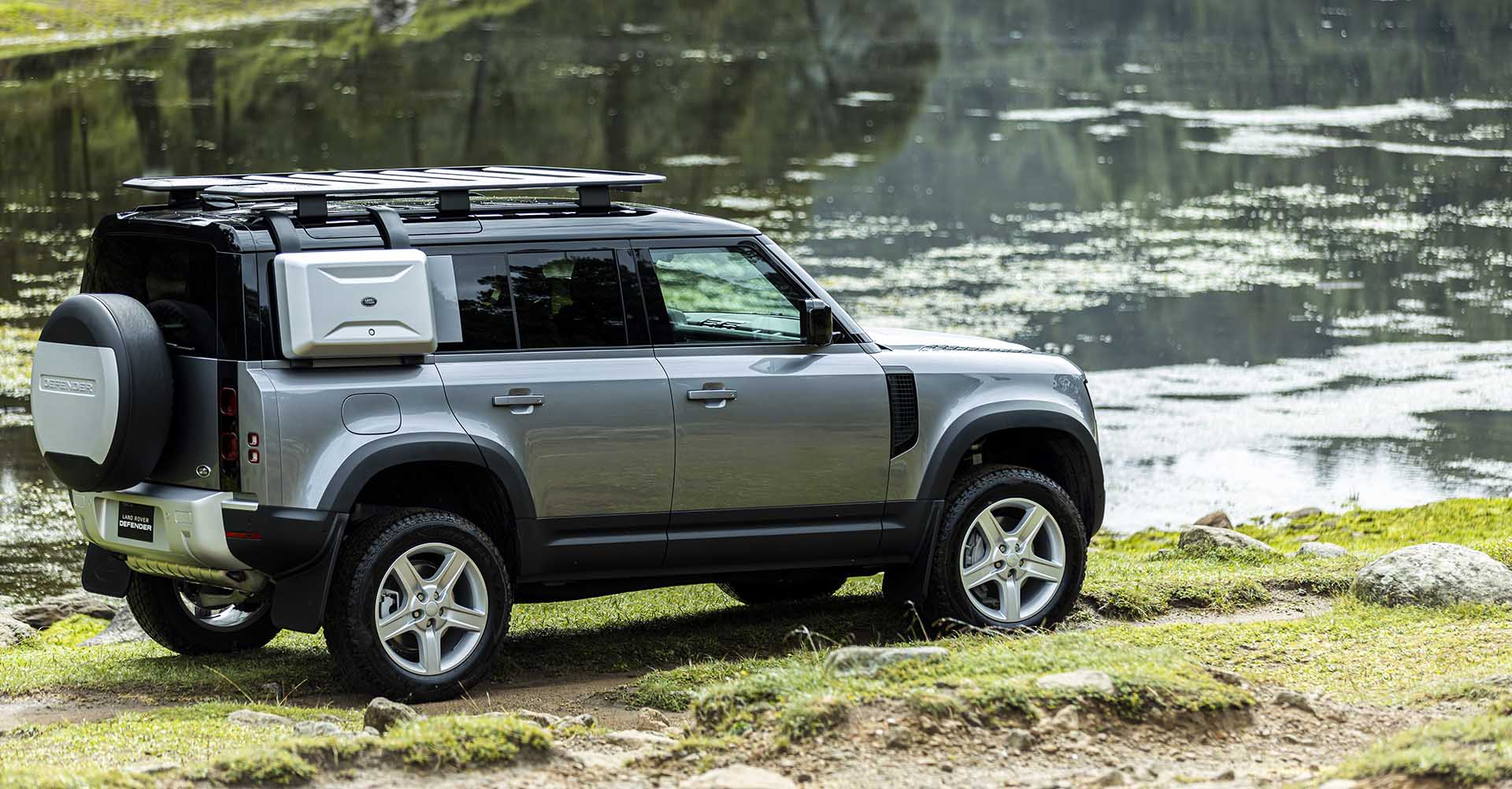 Los clientes pueden optar por la innovadora gama de accesorios exteriores del Defender, que incluyen portaequipajes para deportes acuáticos, rieles para el techo para aprovechar al máximo la impresionante carga dinámica máxima de 168 kg, también se pueden incluir un porta equipaje de montaje lateral exterior y una escalera de techo desplegable, hechos para cada gusto y estilo de vida”.