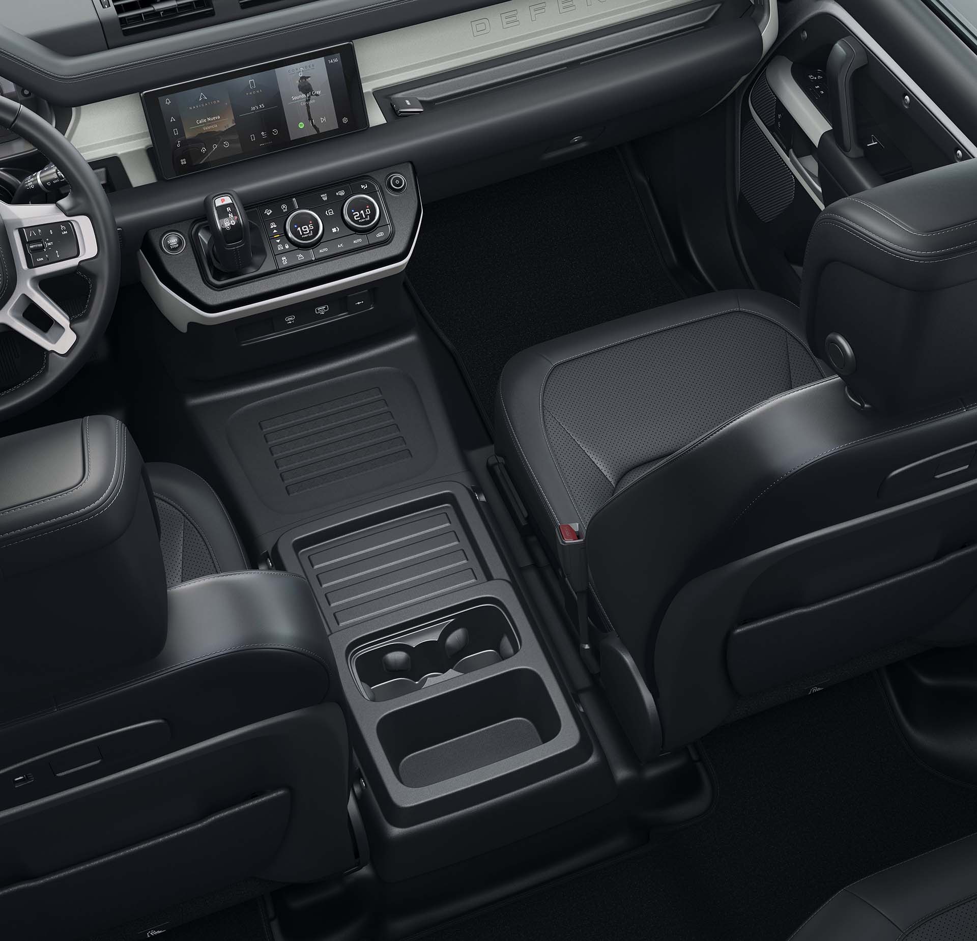 Las características fáciles de usar incluyen toques prácticos e innovaciones tecnológicas avanzadas. Los pisos de goma duraderos evitan los derrames en las aventuras diarias y expediciones únicas en la vida, proporcionando interior limpio. Un techo de tela plegable opcional de longitud completa proporciona una sensación de parte superior abierta. También permite que los pasajeros en los asientos de la segunda fila del Defender 110 se pongan de pie cuando estén estacionados para proporcionar la experiencia completa de safari.