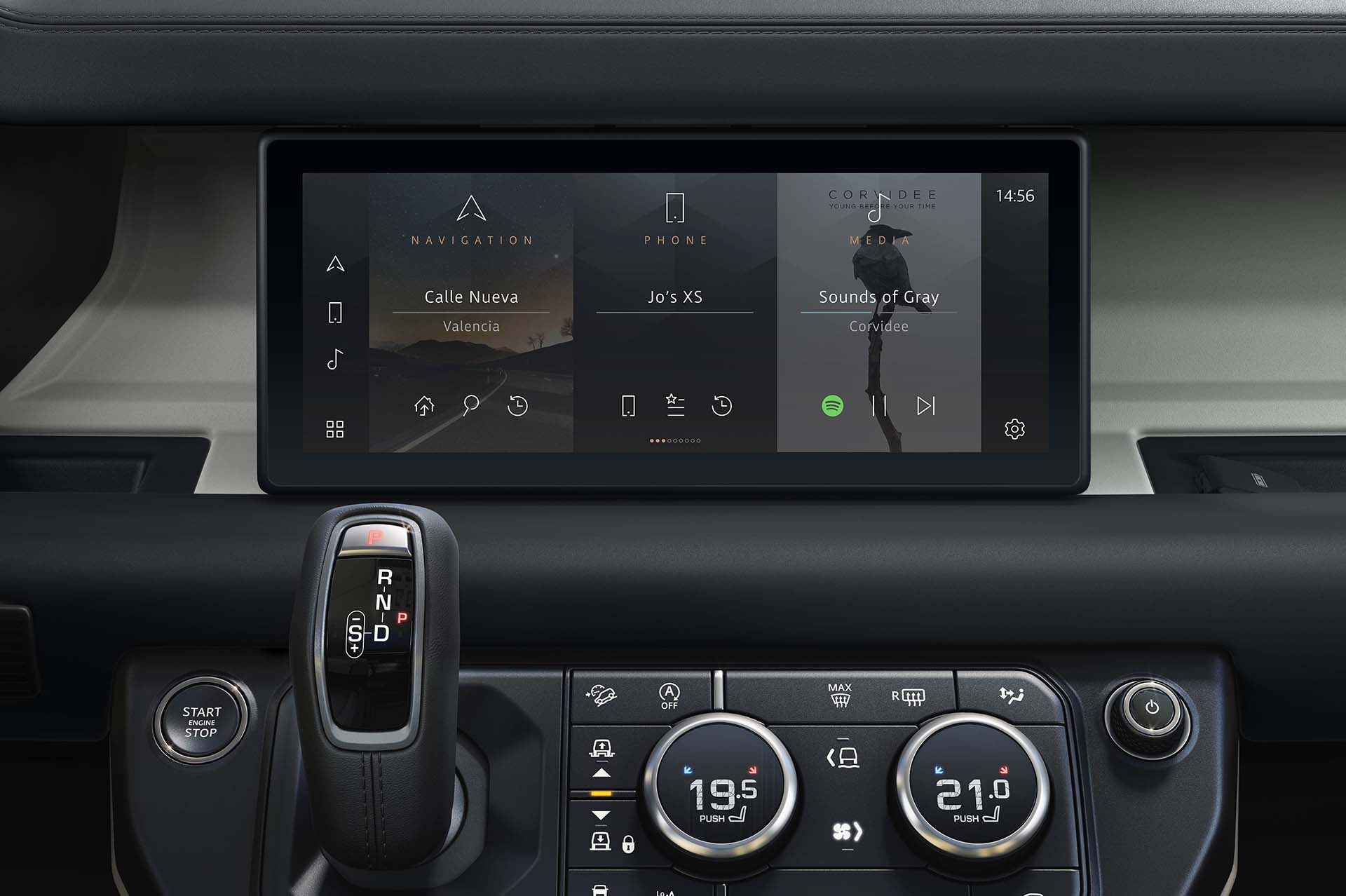 El nuevo Defender es tan tecnológicamente avanzado como duradero. Presenta el nuevo sistema de Info entretenimiento Pivi Pro de Land Rover. La pantalla táctil de próxima generación es intuitiva y fácil de usar, requiere pocas entradas para realizar tareas de uso frecuente, mientras que su diseño siempre activo garantiza respuestas casi instantáneas.