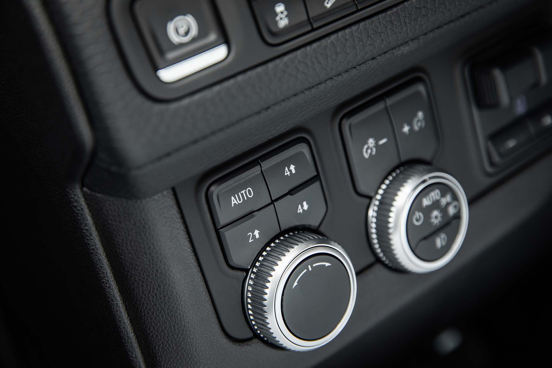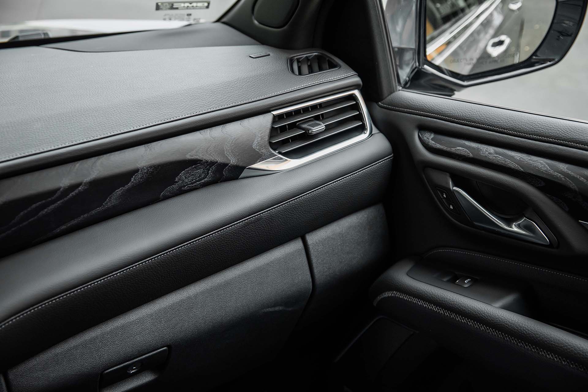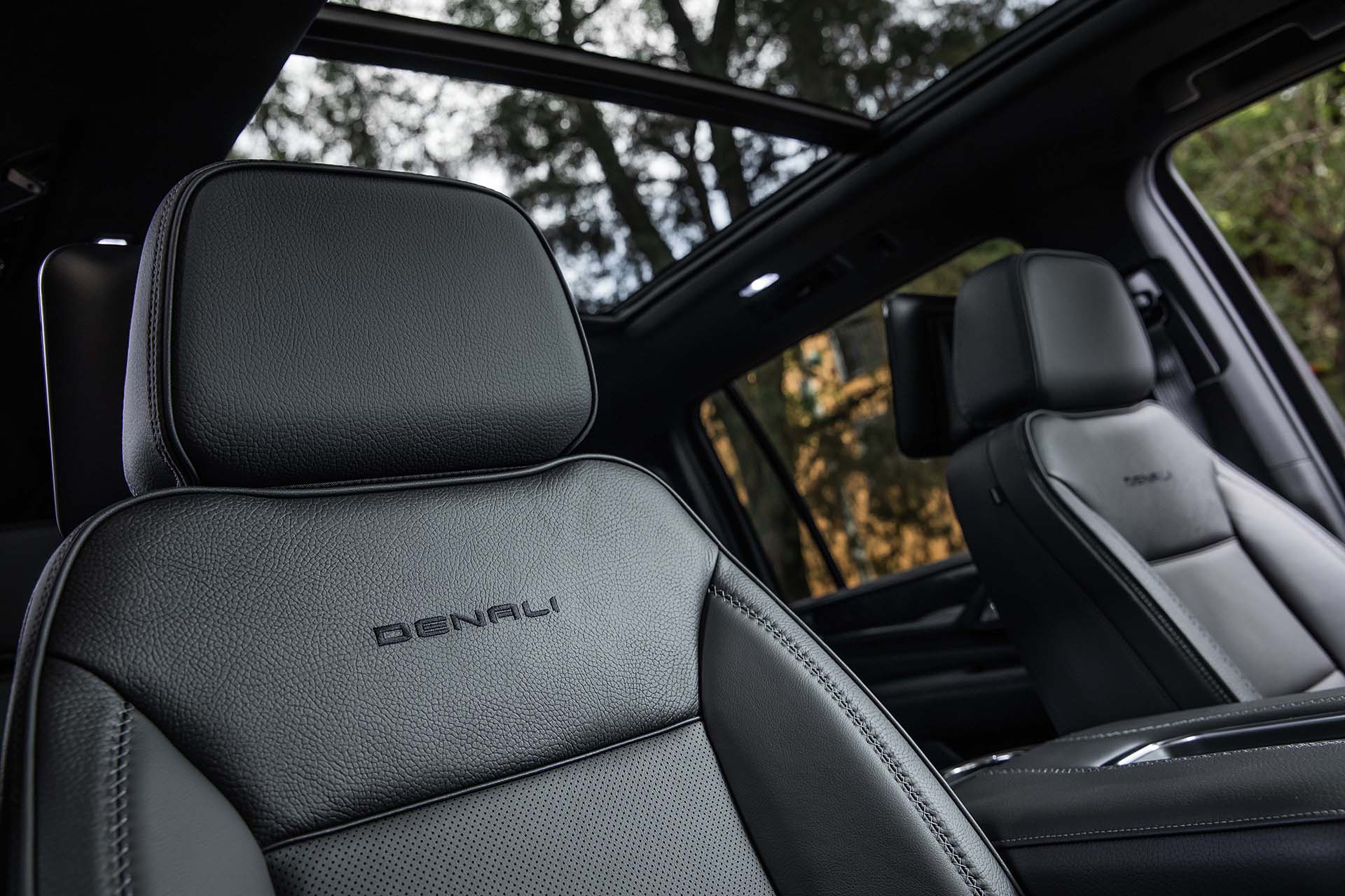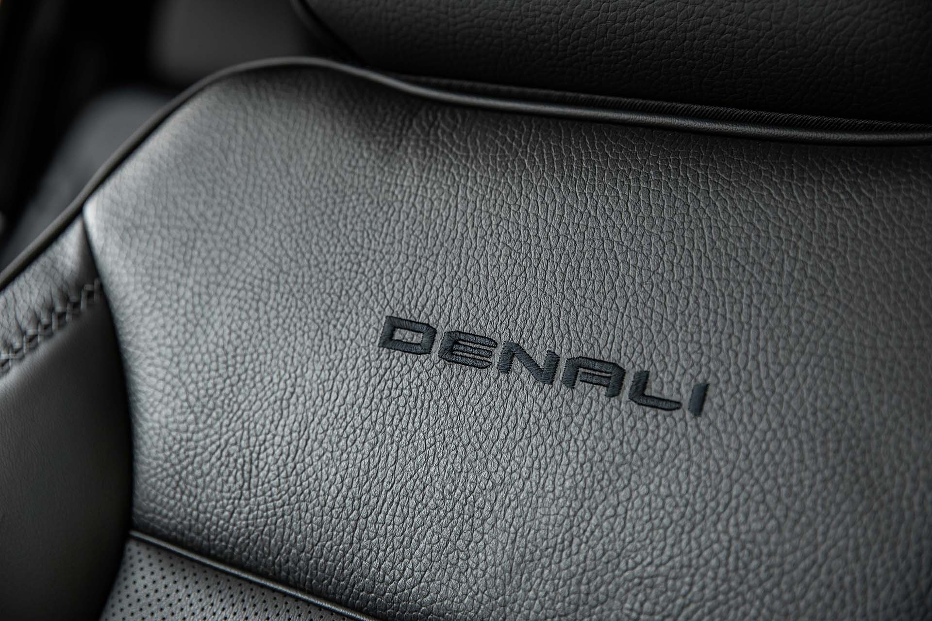 - Diseño interior premium característico de Denali, que la diferencia de cualquier competidor con detalles de lujo, como insertos de madera real a poro abierto y aluminio, costuras bold cross en asientos y descansabrazos, así como el emblema Denali bordado en las cabeceras de los asientos.
