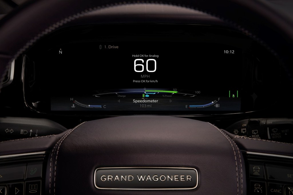 El Grand Wagoneer cuenta con un sistema de propulsión eléctrico híbrido enchufable (PHEV, por sus siglas en inglés) en consonancia con los planes de la marca de ofrecer opciones de electrificación en todos sus modelos en los próximos años.
