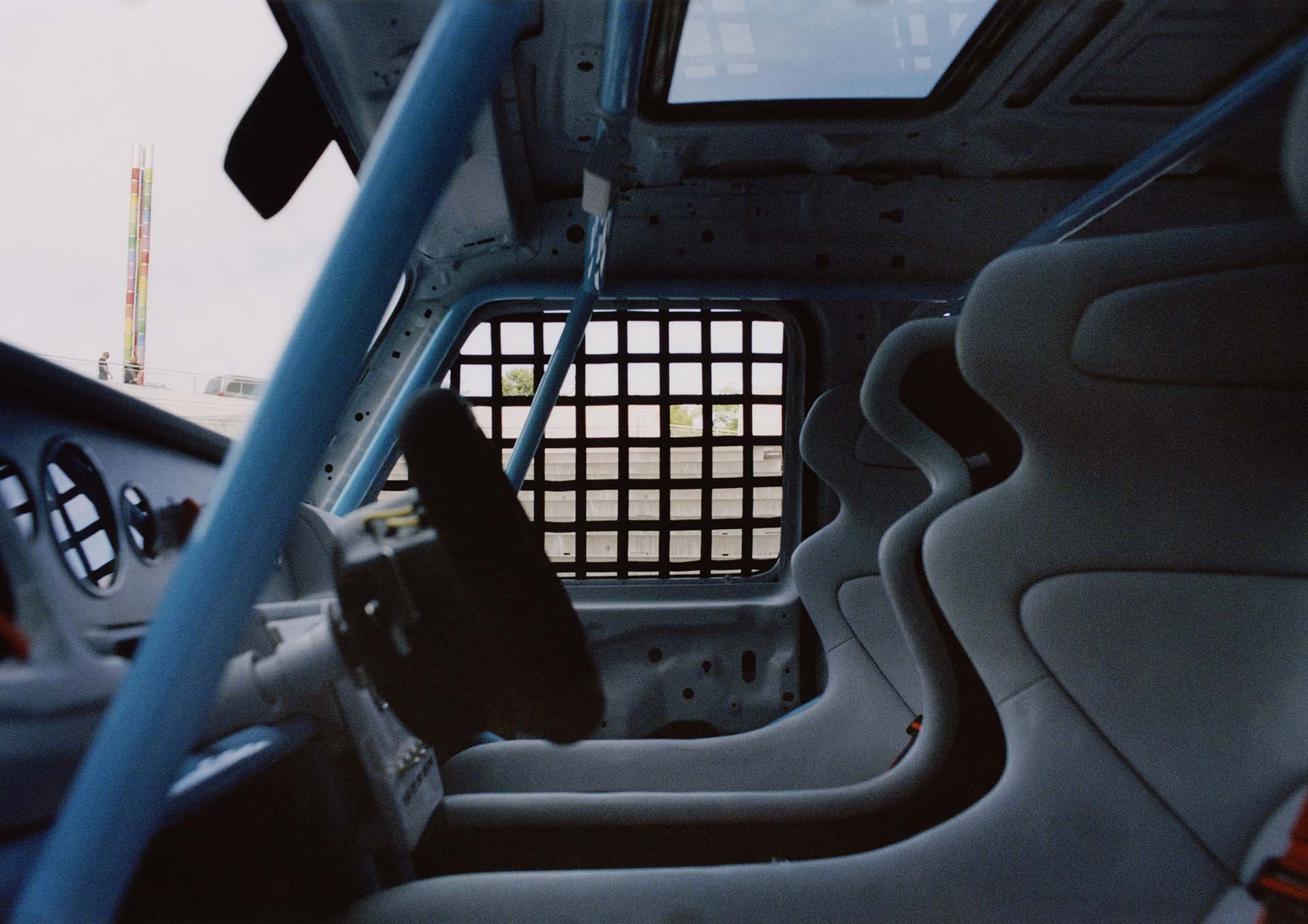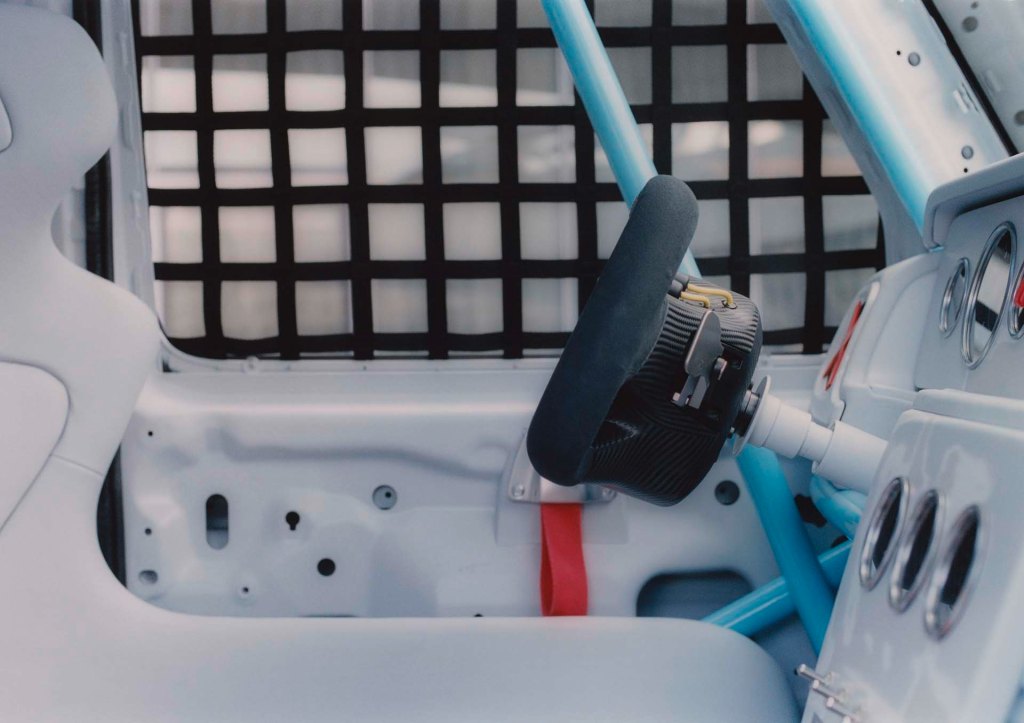 Dentro de la obra de arte, la inspiración de las carreras es clara; evitando todos los clichés de un SUV. Todos los interiores se han despojado y el marco de seguridad se convierte en un motivo central. El tablero se quita y se reemplaza con una versión limpia y reducida que celebra un velocímetro analógico y medidores de combustible, que recuerdan a un automóvil clásico. Esto contrasta con el volante y los asientos, que son más parecidos a un vehículo de Fórmula 1. Las características de seguridad y los elementos clave de las carreras, como el marco de seguridad o los cinturones de seguridad de 5 puntos, están resaltados en tonos azul claro y rojo brillante. Estos fuertes colores de acento crean un nuevo tipo de agrupación de colores y contrastan con el interior desnudo.