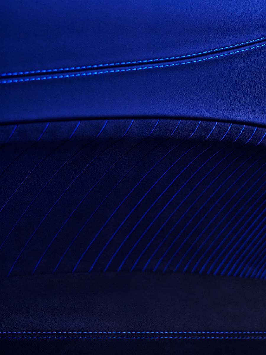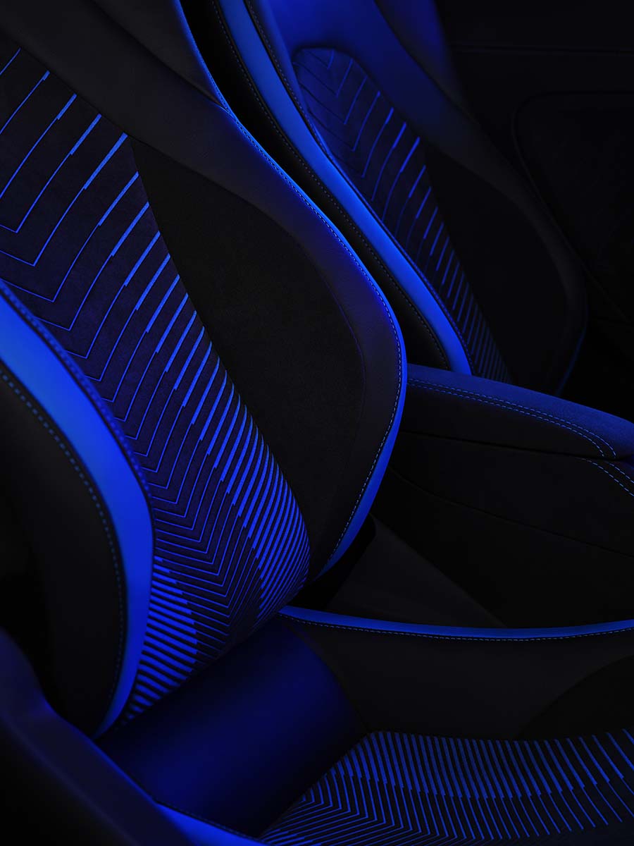 La simplicidad es también la nota clave de la consola central revestida de fibra de carbono, con sólo algunas características: el cargador inalámbrico del teléfono inteligente, el selector de modo de conducción (GT, Wet, Sport, Corsa y un quinto, ESC Off, que desactiva las funciones de control), dos botones de selección de velocidad, los controles de la ventana de alimentación, los controles del sistema multimedia y un práctico compartimento de almacenamiento debajo del reposabrazos. Todos los demás controles están en el volante, con el botón de encendido a la izquierda y el control de lanzamiento a la derecha.