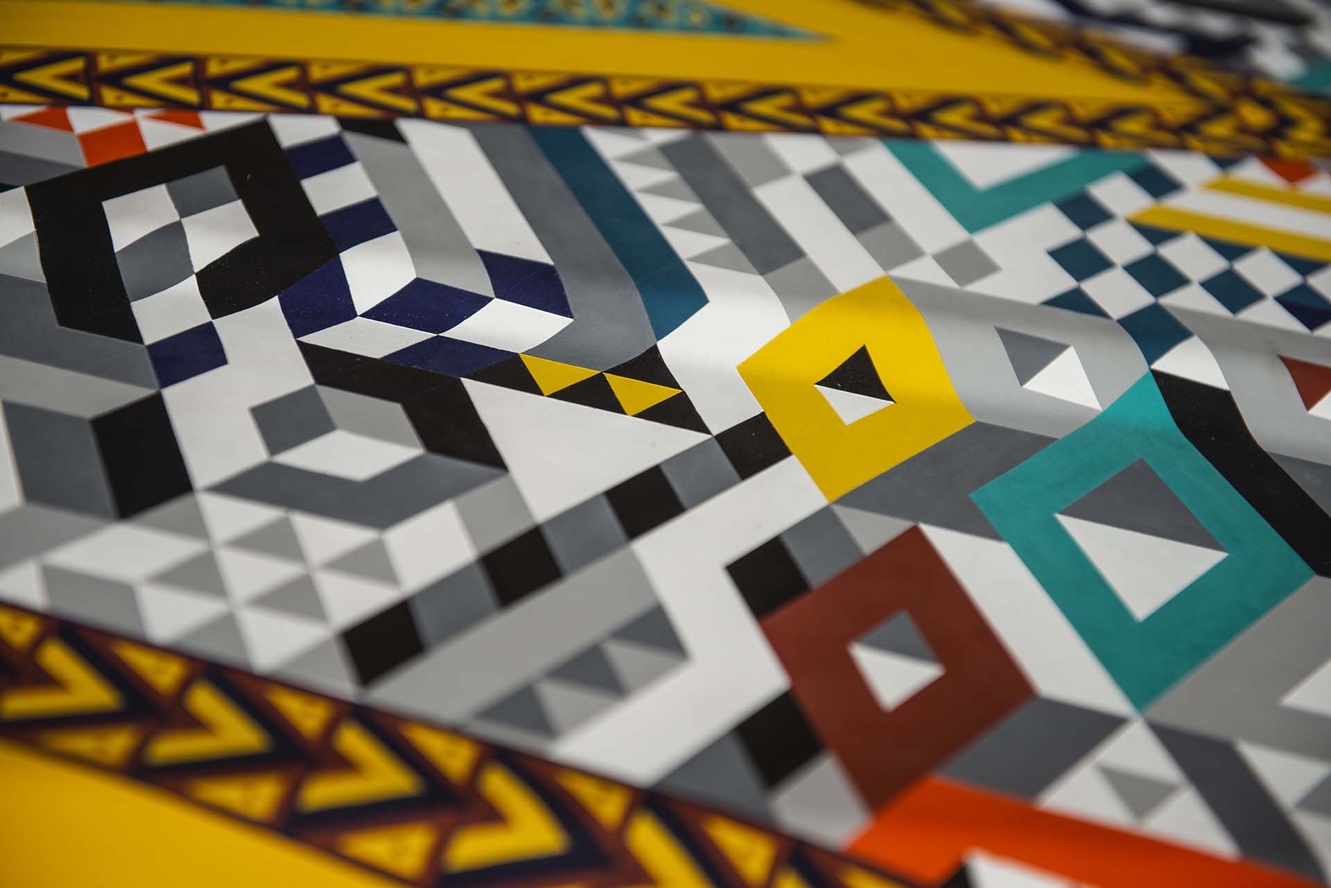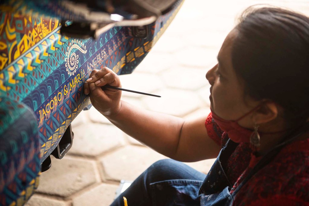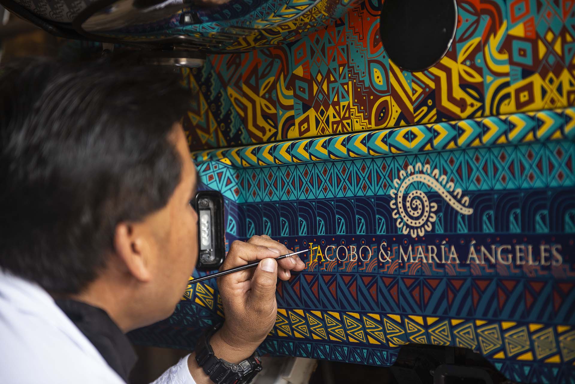 Esta obra rescata la tradición y el talento que se requieren para la fabricación tanto de automóviles como de artesanías, con gráficos precolombinos, colores típicos de Oaxaca y México, como el amarillo, negro y rojo, además de una bandera de los pueblos indígenas americanos visible en el techo, que se combina con los elementos de una bandera de carreras.