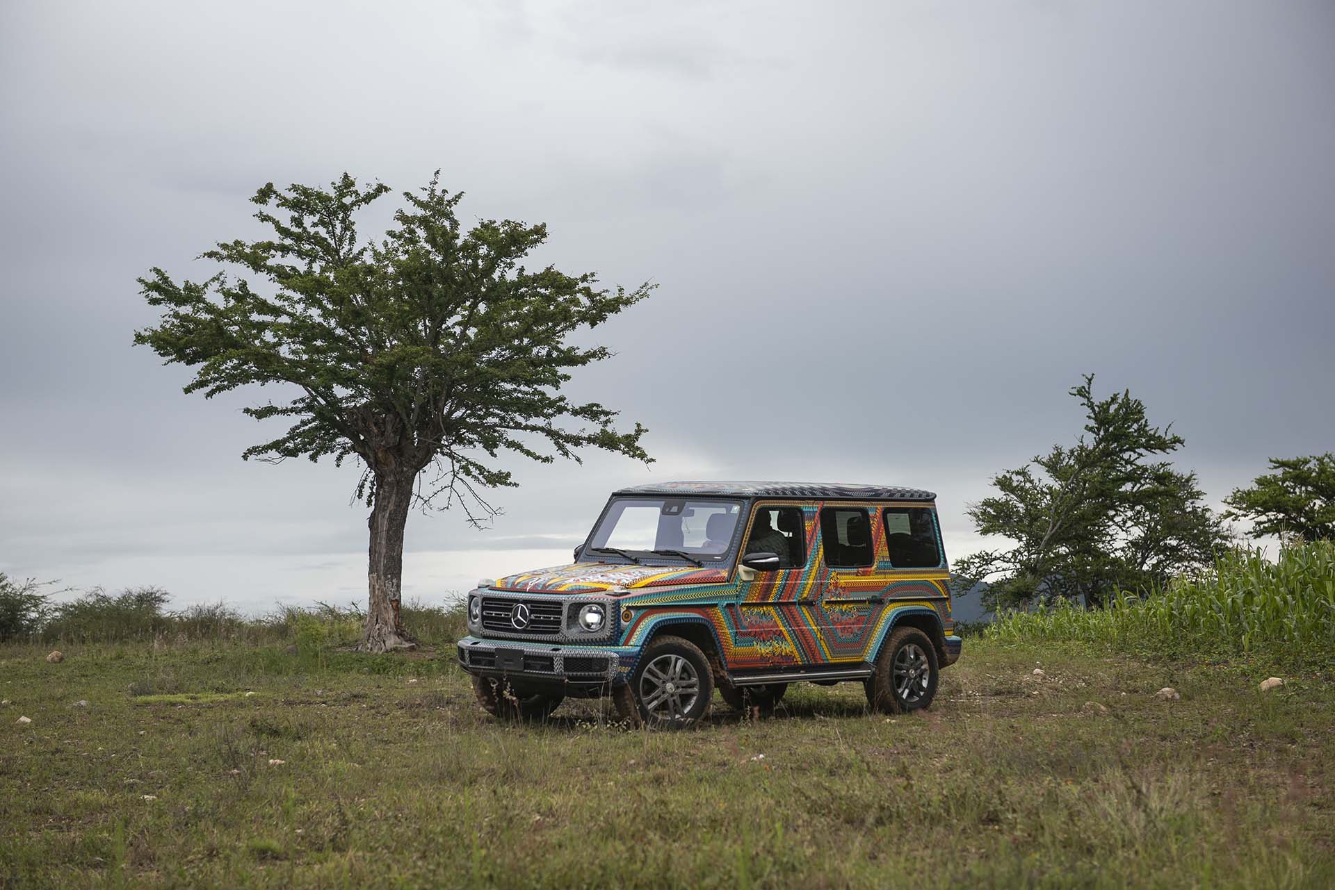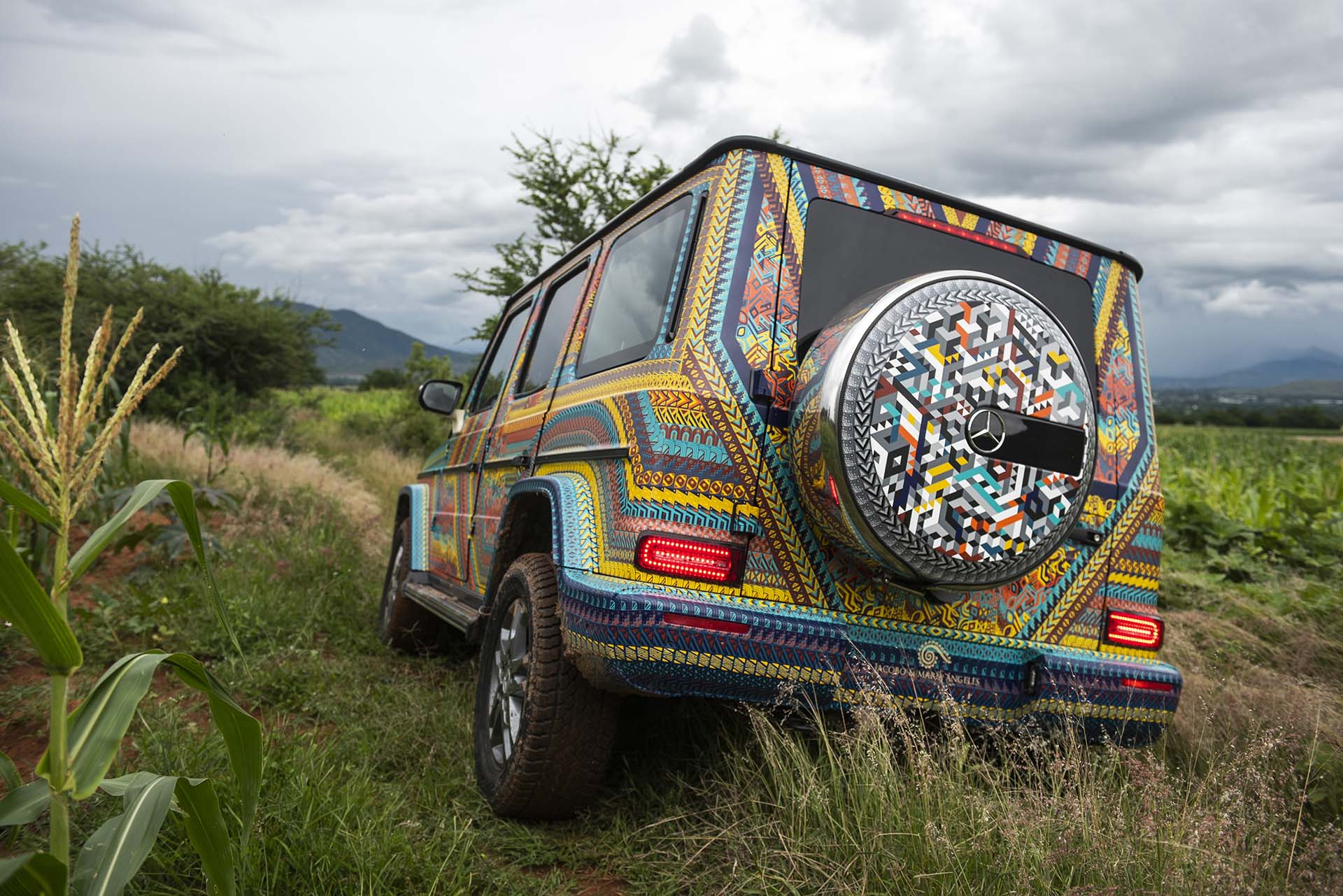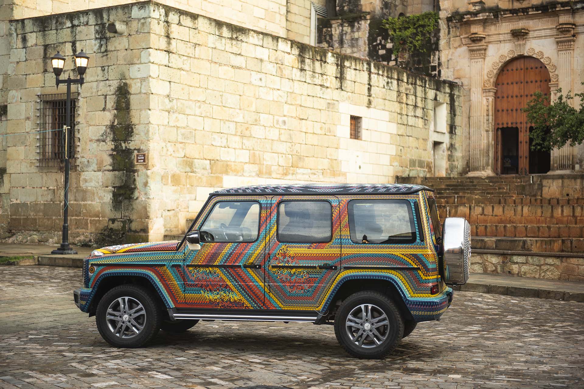 La decoración pintada a mano fue realizada en San Martín Tilcajete, pueblo ubicado en los valles centrales de Oaxaca, en donde los artesanos tienen su taller, tomando como inspiración los tres puntos de la estrella de Mercedes-Benz, que representan la motorización universal: por aire, por mares y por tierra. El emblema fue relacionado con los tres poderes zapotecas: el águila (viento), la serpiente (inframundo) y el jaguar (tierra), también conocidos como tonas; animales míticos y protectores que comparten el destino con una persona, y que se convierten en nahuales al fusionarse con el espíritu de un humano.