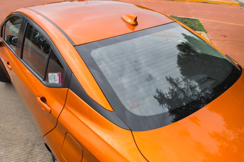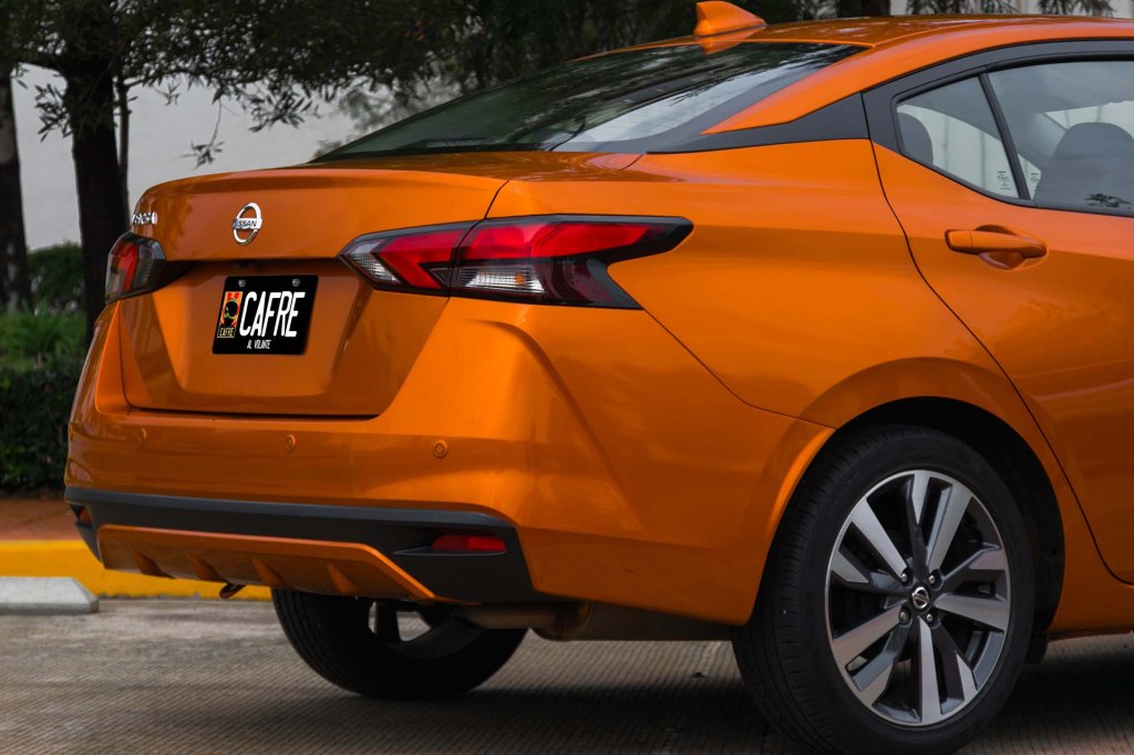 En la parte atrás vemos las nuevas y afiladas luces del Nissan Versa delineadas en negro y queriendo abarcar buena parte del costado, en la parte inferior de la fascia podemos notar el sencillo difusor pintado con el color de la carrocería para hacerlo resaltar y darle un aspecto más deportivo.
