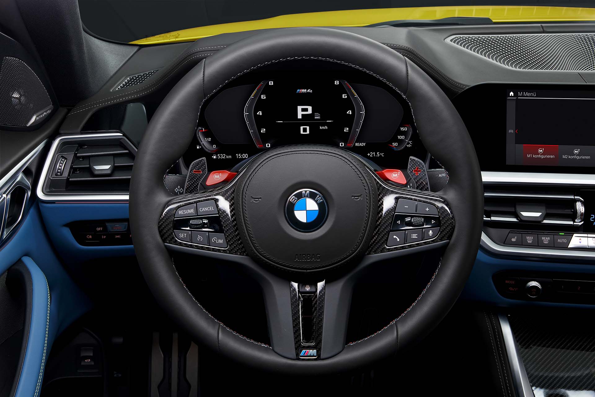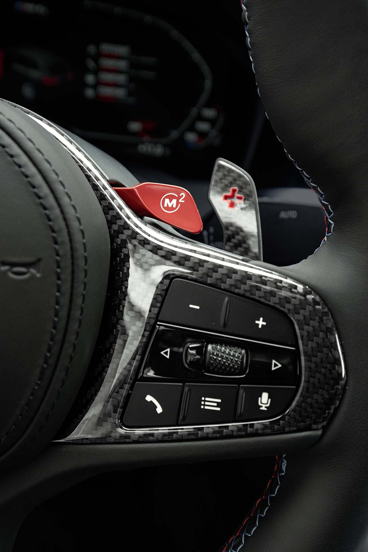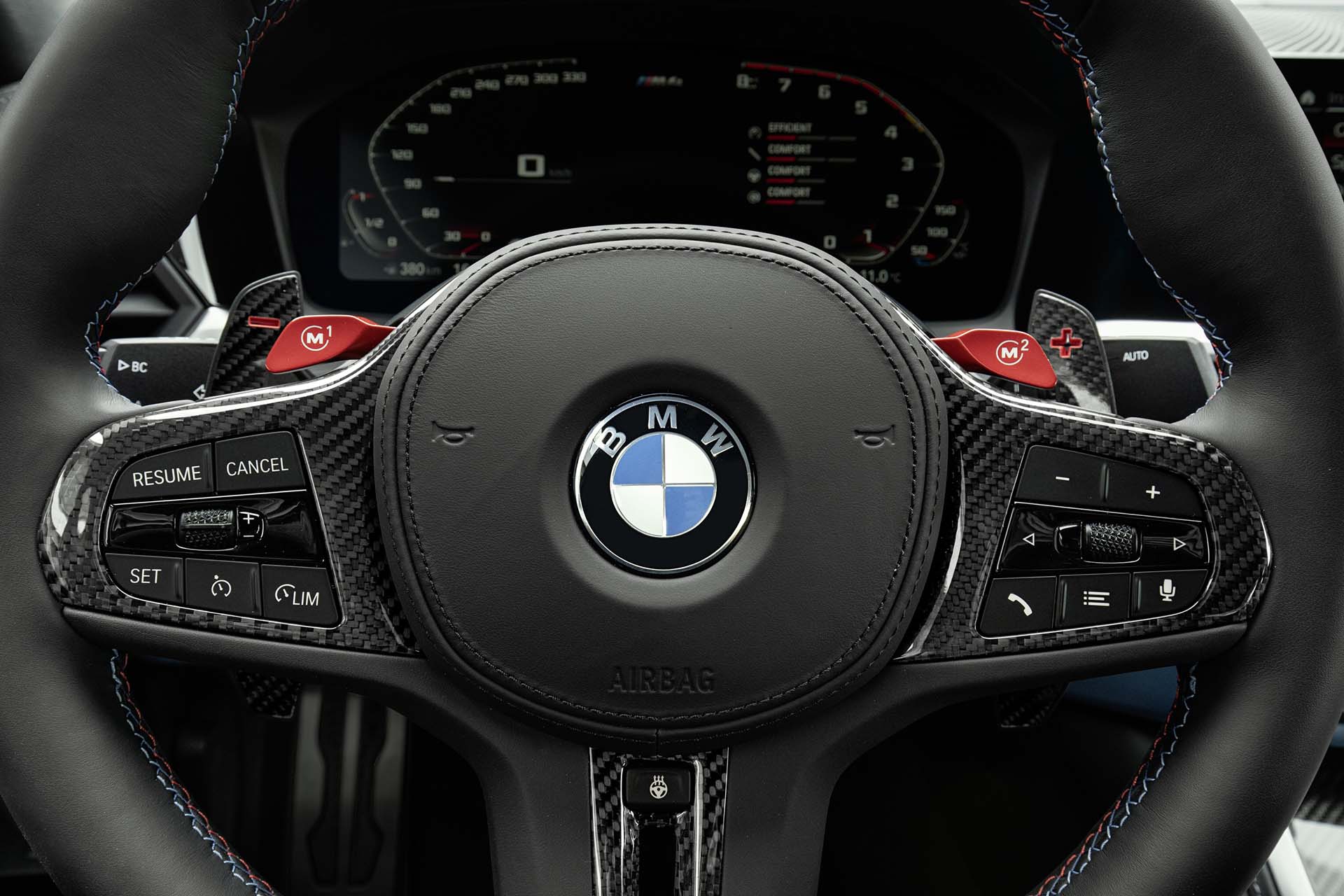 Un toldo de acero con techo corredizo / inclinable de vidrio integral está disponible como una opción sin costo para ambos modelos como alternativa a la versión de serie de fibra de carbono. Mientras tanto, el nuevo paquete M Race Track ofrece una reducción específica del peso del vehículo. Este paquete incluye frenos carbono-cerámicos M, rines de aleación ligera M de peso mínimo (disponibles como opción con neumáticos “semi-slick”) y los asientos tipo cubo M Carbon.