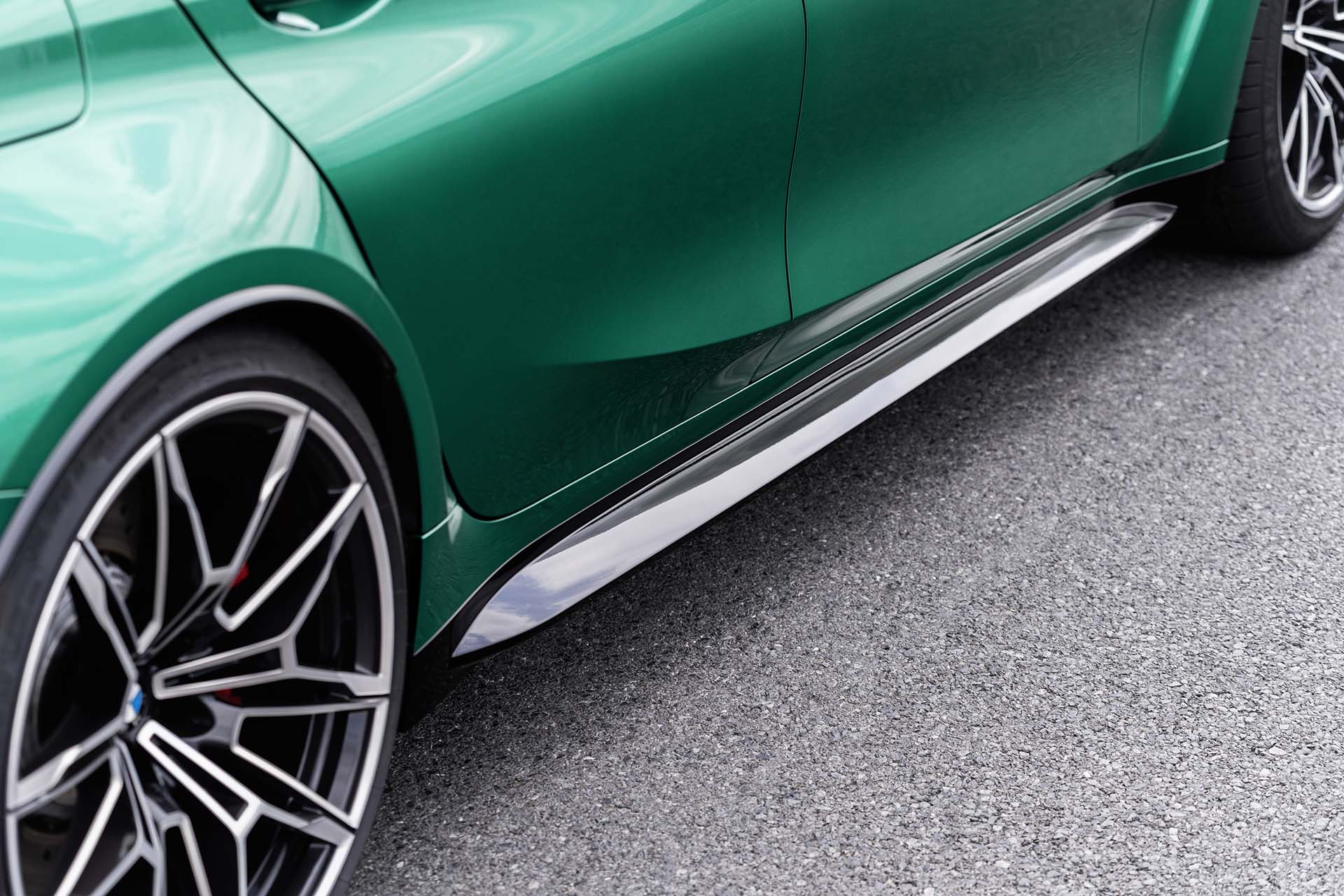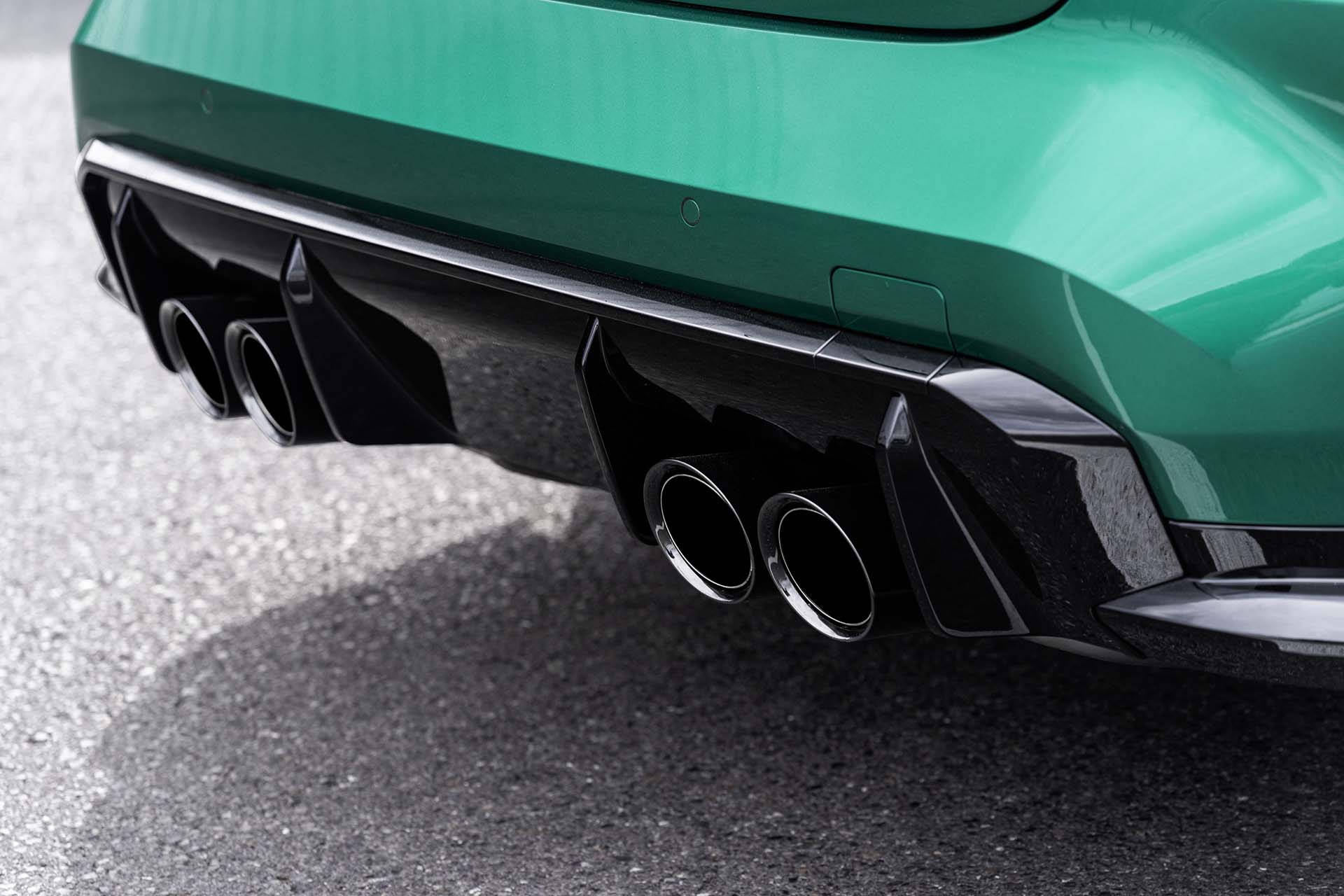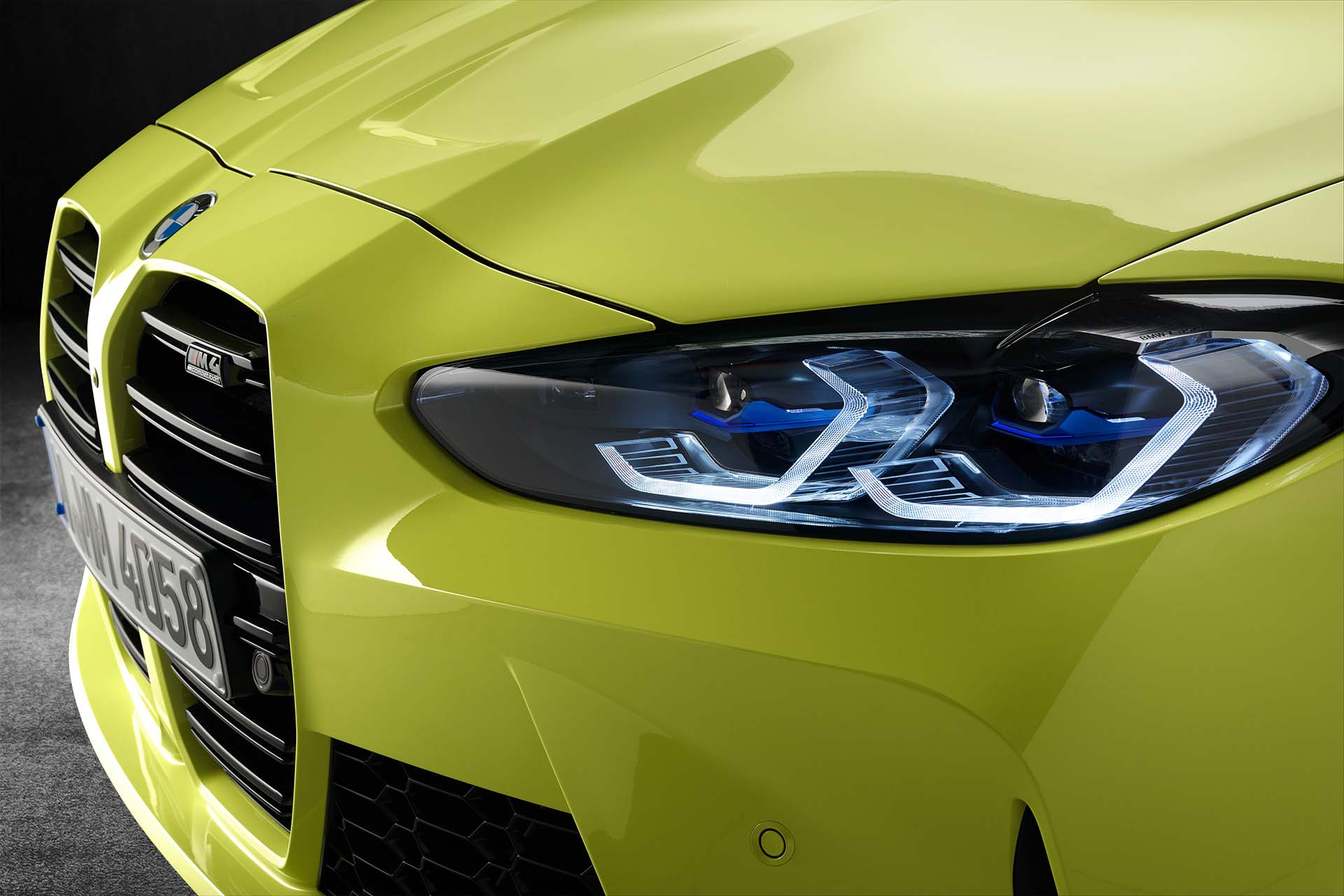 El diseño distintivo de la carrocería del nuevo BMW M3 Sedán y el nuevo BMW M4 Coupé transmite una declaración más audaz que nunca de la supremacía del desempeño y la experiencia de conducción emocionalmente atractiva que tenemos a mano. Las características de diseño específicas de M, firmemente invertidas en los requisitos funcionales de los vehículos deportivos de alto desempeño, se integran armoniosamente en el lenguaje de diseño moderno. Los factores que contribuyen a la apariencia visualmente impactante de los dos modelos incluyen la versión específica de M de la gran parrilla doble en forma de riñón vertical de BMW con barras horizontales, las salpicaderas poderosamente esculpidas con llamativas branquias M y los estribos laterales prominentemente extendidos con piezas de fijación para las secciones delantera y trasera El sedán y el coupé también tienen un toldo hecho de polímero reforzado con fibra de carbono (CFRP) con aletas optimizadas aerodinámicamente, un alerón trasero y los dos pares de tubos de escape que ahora son una característica habitual de los vehículos M.