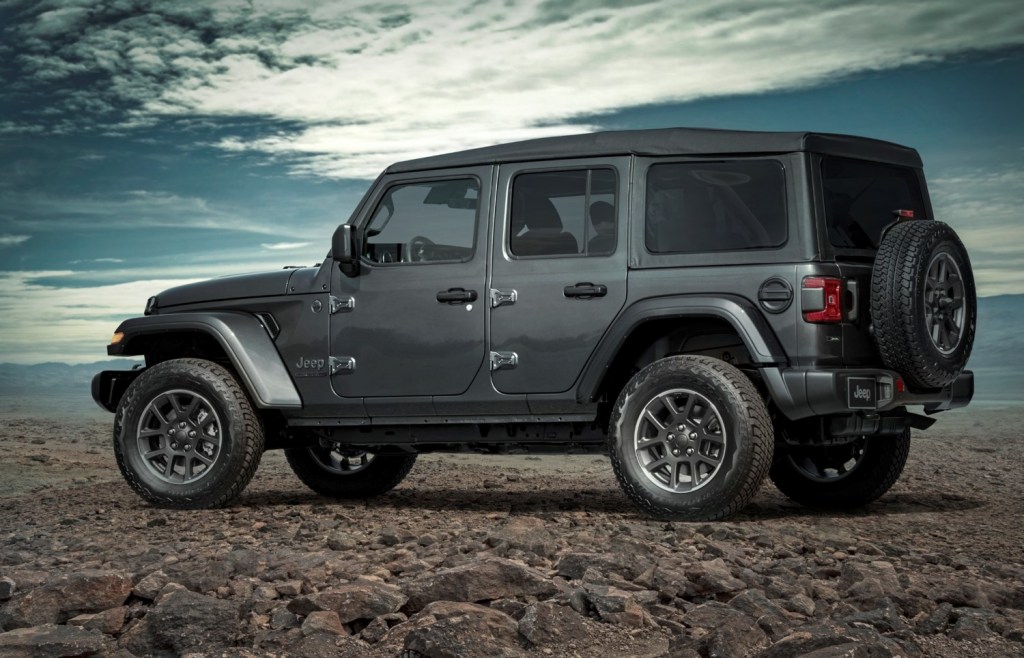 Jeep Wrangler 80th Anniversary estará disponible en Granite Crystal, Bright White, Hella Yella, Black, Firecracker Red, Sting Gray, Sarge y Snazzberry. Entre sus elementos se incluyen: