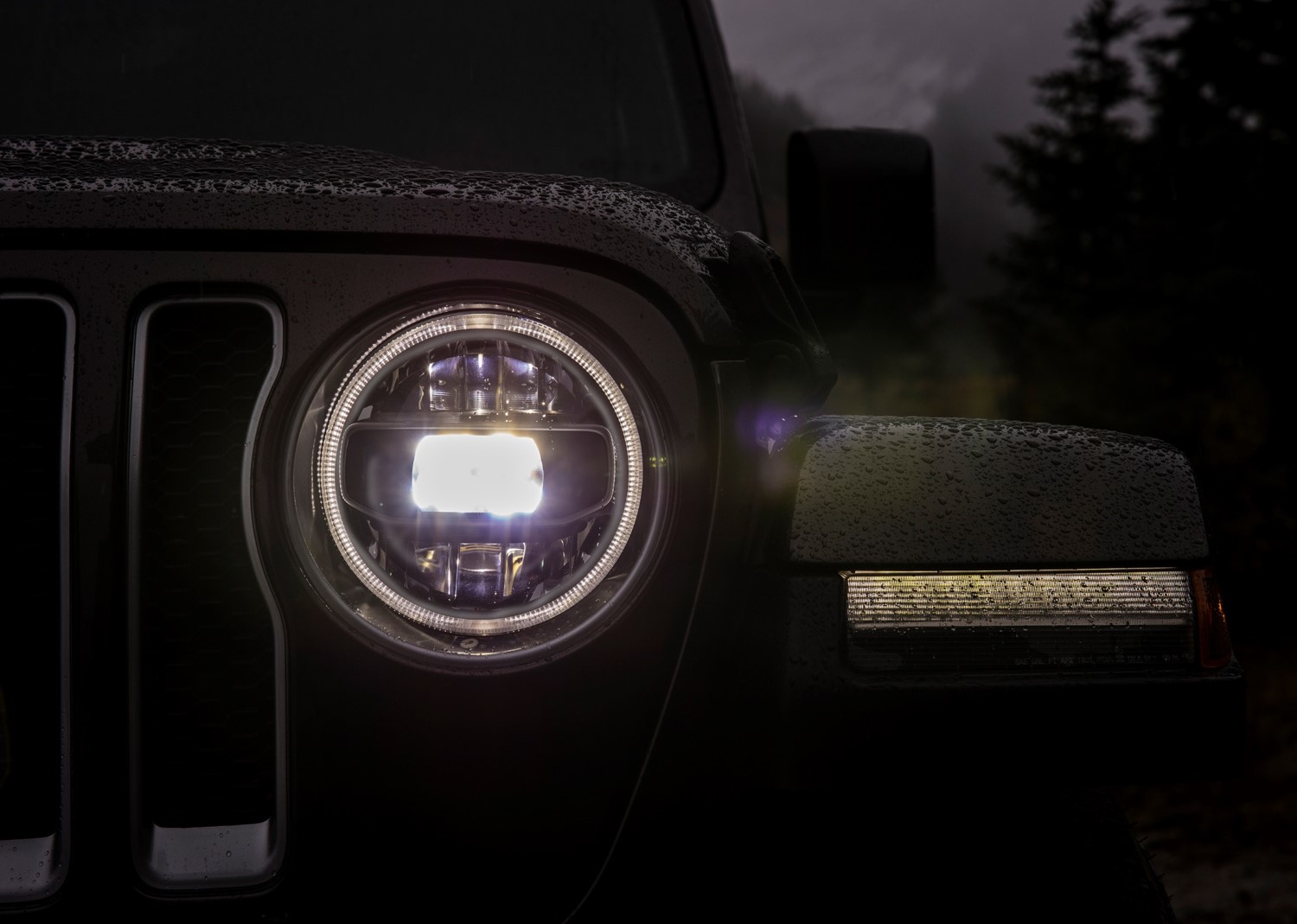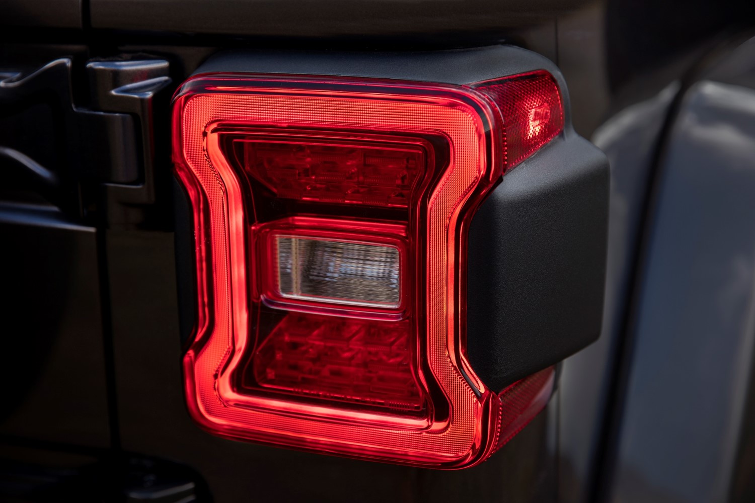 Los faros delanteros y antiniebla en LED proporcionan una nítida luz blanca y se suman a la distintiva imagen del nuevo Wrangler. Tanto el Sahara como el Rubicon cuentan con luces diurnas que forman un halo alrededor del perímetro exterior de los faros delanteros, y luces direccionales delanteras ubicadas en la parte frontal de las salpicaderas. En la parte trasera, encontramos las tradicionales luces cuadradas también en LED para las versiones Sahara y Rubicon.