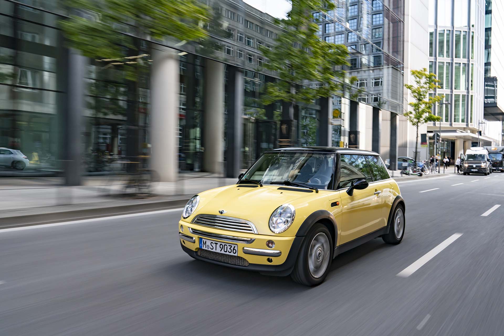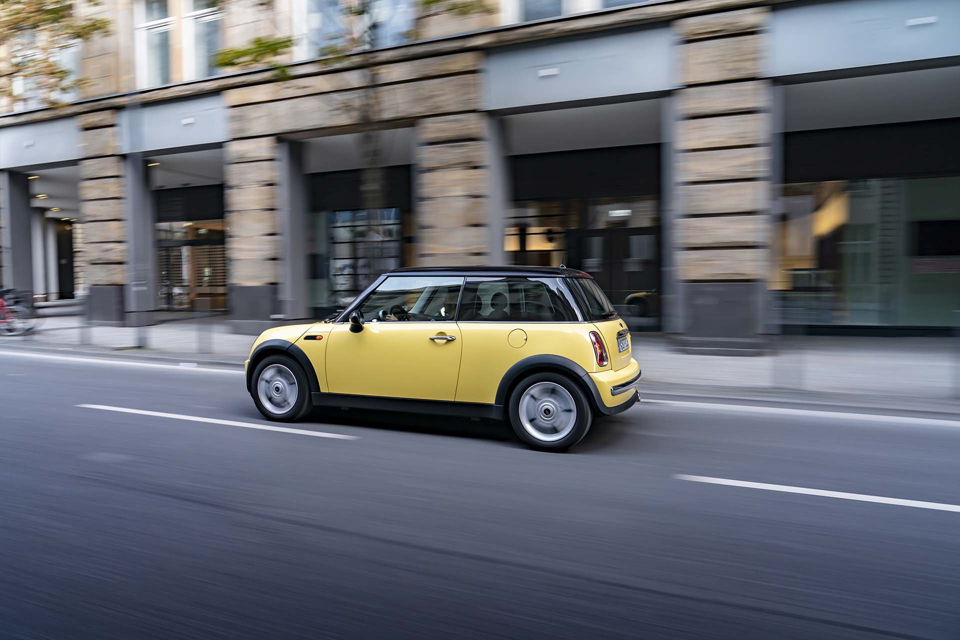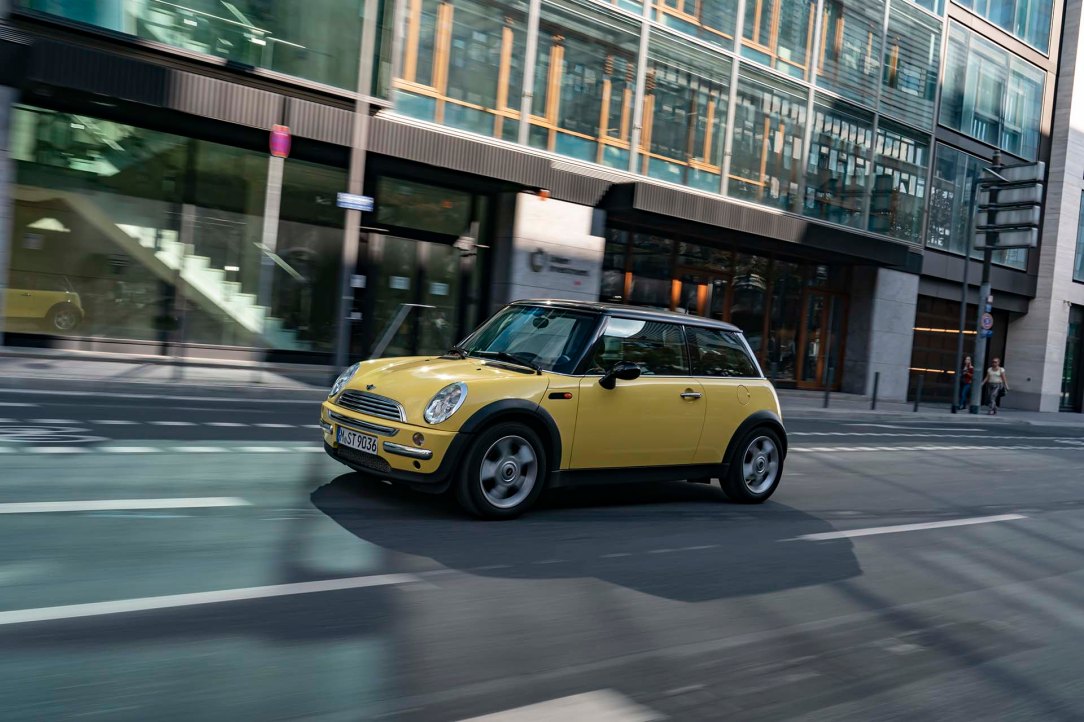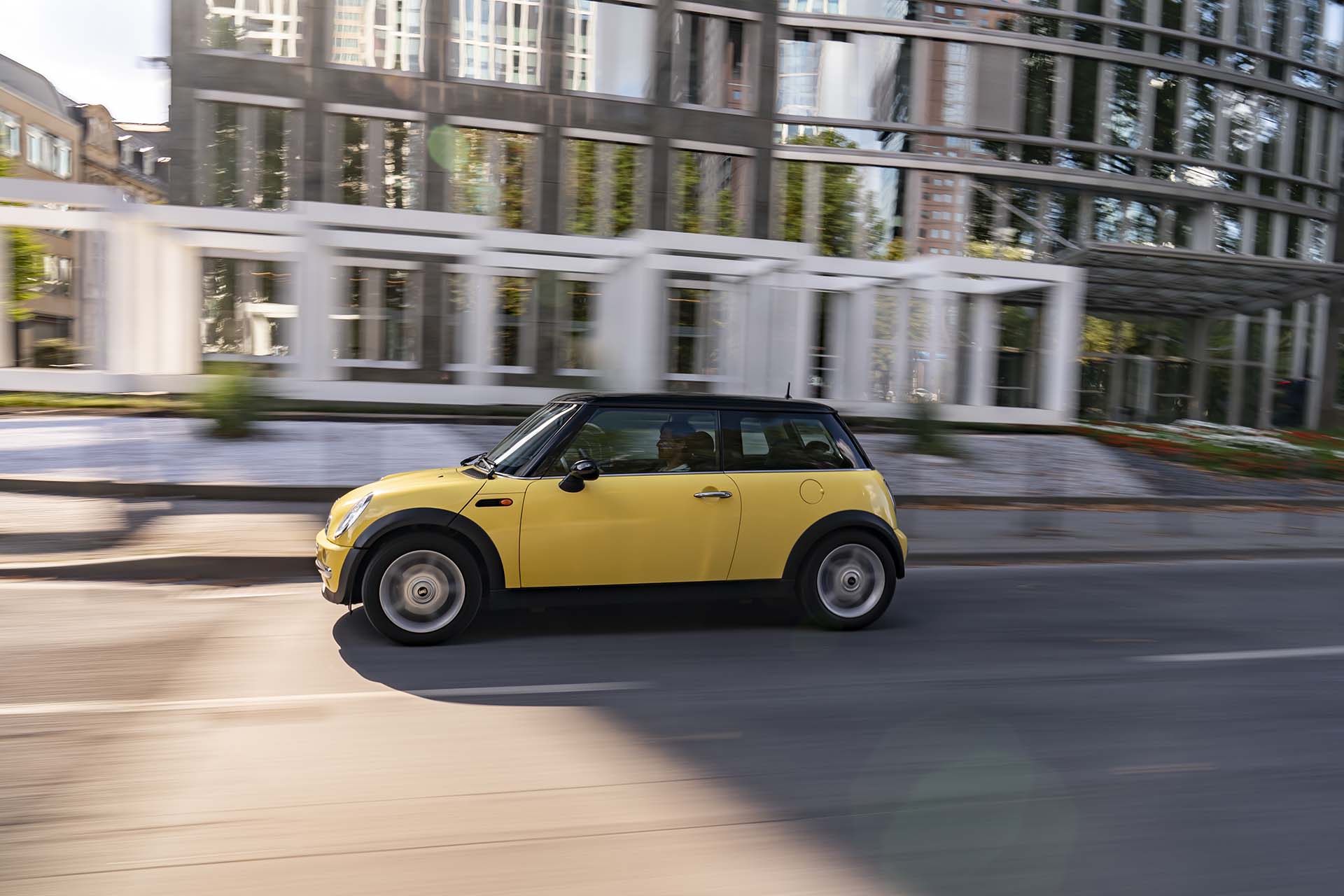 Un viaje en el tiempo con un ejemplo temprano del MINI Cooper brinda una oportunidad ideal para seguir la pista del carácter pionero exhibido por la segunda generación. El embajador de la fase inicial del original británico para el siglo XXI salió de la línea de producción en octubre de 2001, seis meses después del lanzamiento de la producción en la planta de MINI en Oxford. Tres propietarios anteriores ya experimentaron un montón de manejo divertido mientras recorrían unos 175,000 kilómetros. Y como todo MINI, se le dio un nombre. Este modelo recibió el nombre de “Sunny”, inspirado en el acabado de pintura de la carrocería en Liquid Yellow, que lo transformó en una rareza. En el primer año de ventas del MINI moderno en Alemania, solo uno de cada quince vehículos se suministró en este color. La combinación con el toldo y las carcasas de los retrovisores exteriores en color negro era aún más rara.