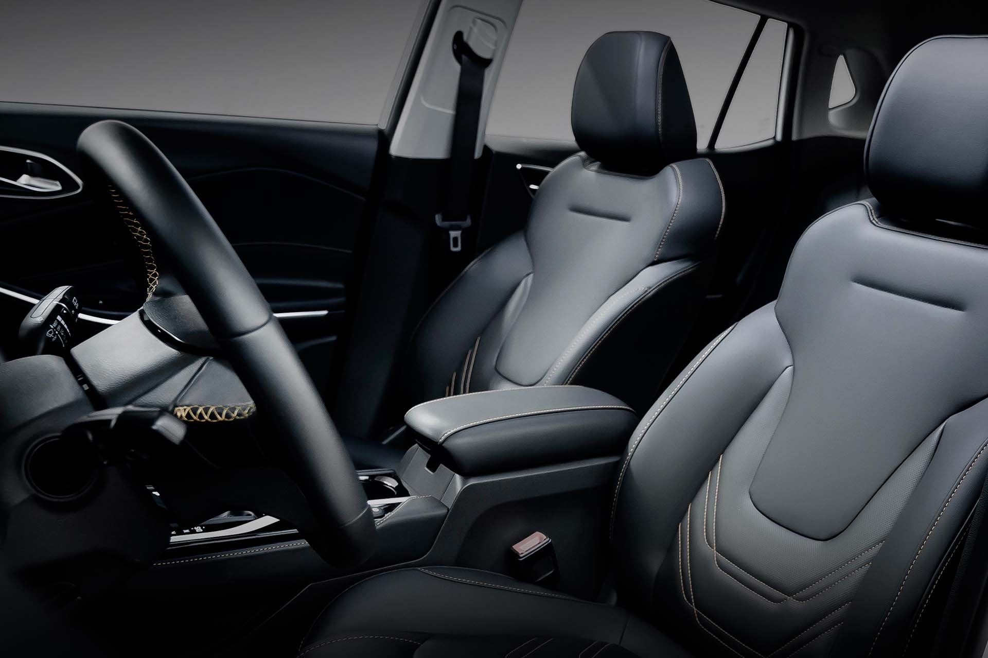 En cuanto al interior, los asientos son forrados en piel color negro con descansabrazos central delantero y trasero. Su pantalla de infoentretenimiento es de 10.25” al igual que el cluster LED; el freno de mano es electrónico con auto-hold y la llave es de presencia. Los elementos adicionales de la versión incluyen: