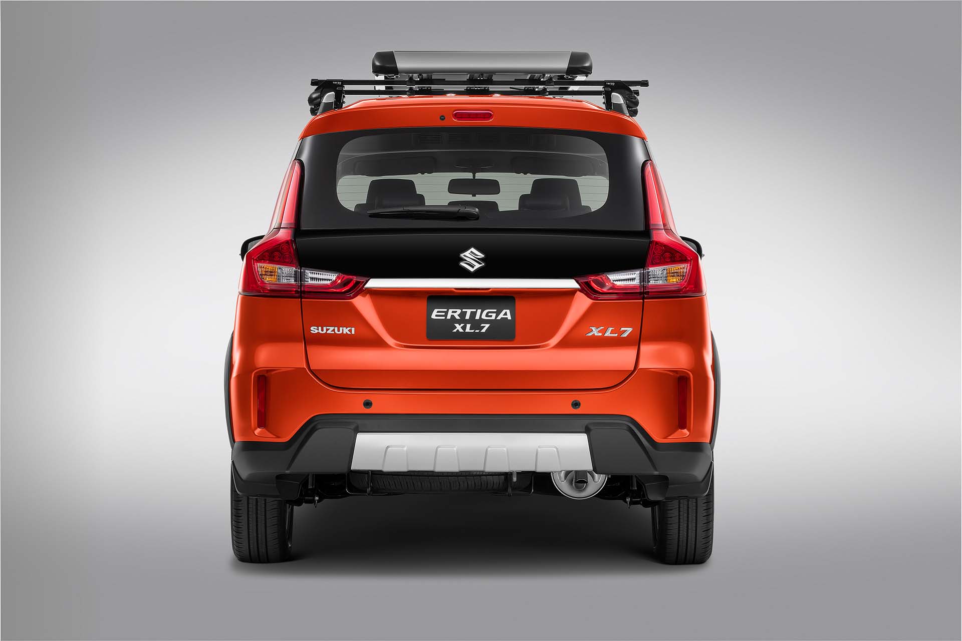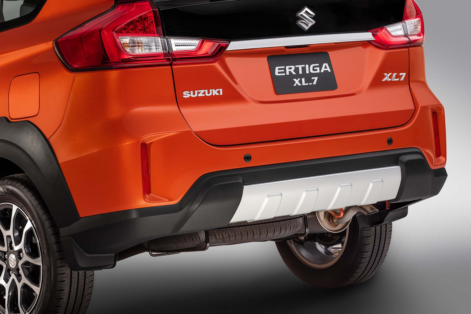 El motor de 4 cilindros de ERTIGA XL7 GLX ofrece un rendimiento de 17.4km/l, potencia de 103hp@6,000rpm y torque de 102lb@4,200 rpm, con una caja de transmisión automática de 4 velocidades. En el diseño exterior de ERTIGA XL7 se aprecia una nueva parrilla hexagonal con inserto cromado, incorporación de nuevo SKID PLATE delanteros y traseros que la vuelven más robusta y atractiva, faros de proyección LED y luces traseras con la misma tecnología; rieles de carga que soportan hasta 45 kg; incorporación de cantoneras en salpicaderas para uso rudo. Los colores de exterior son: Naranja Atardecer, Gris Magma, Blanco Perlado y Negro Cosmos.