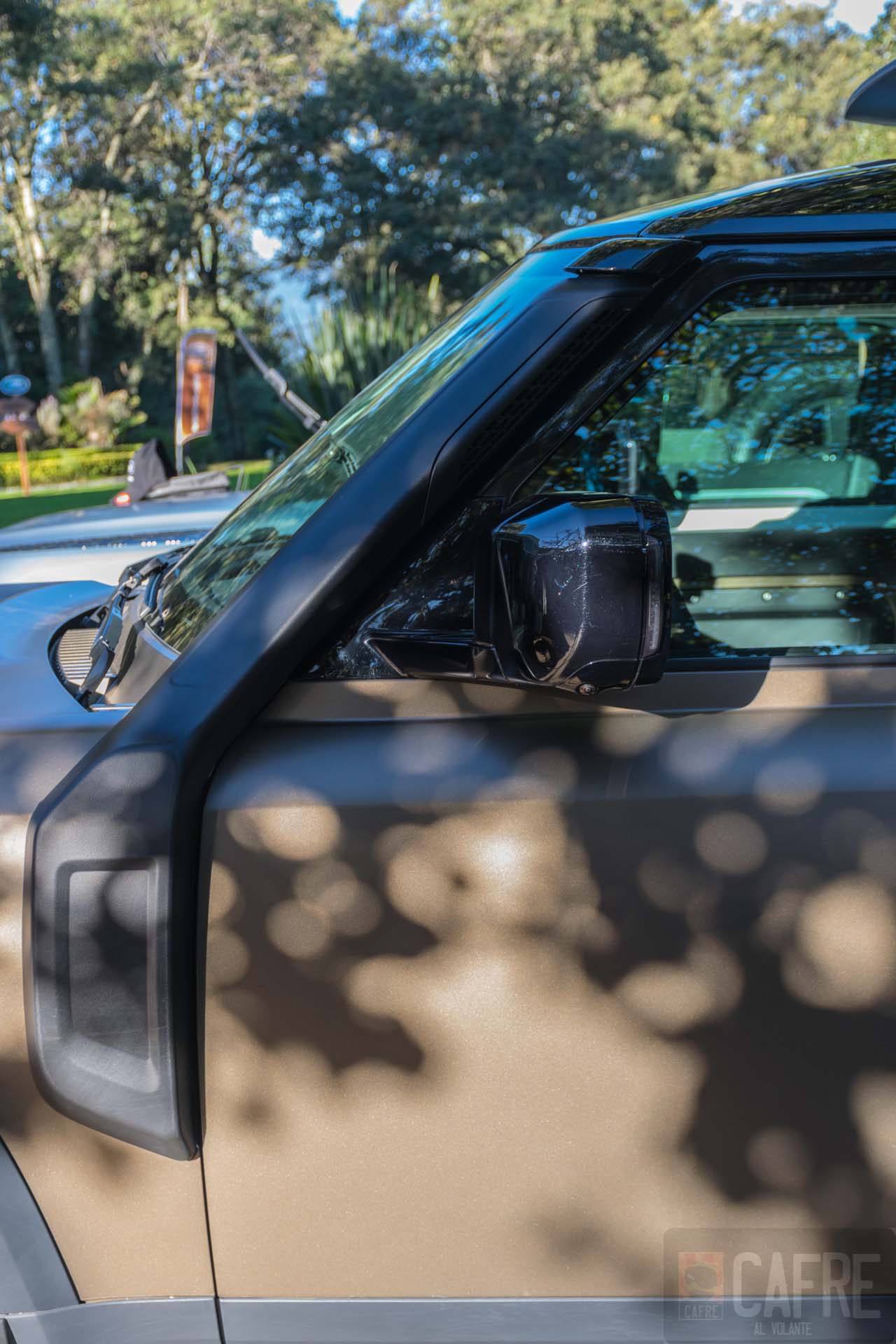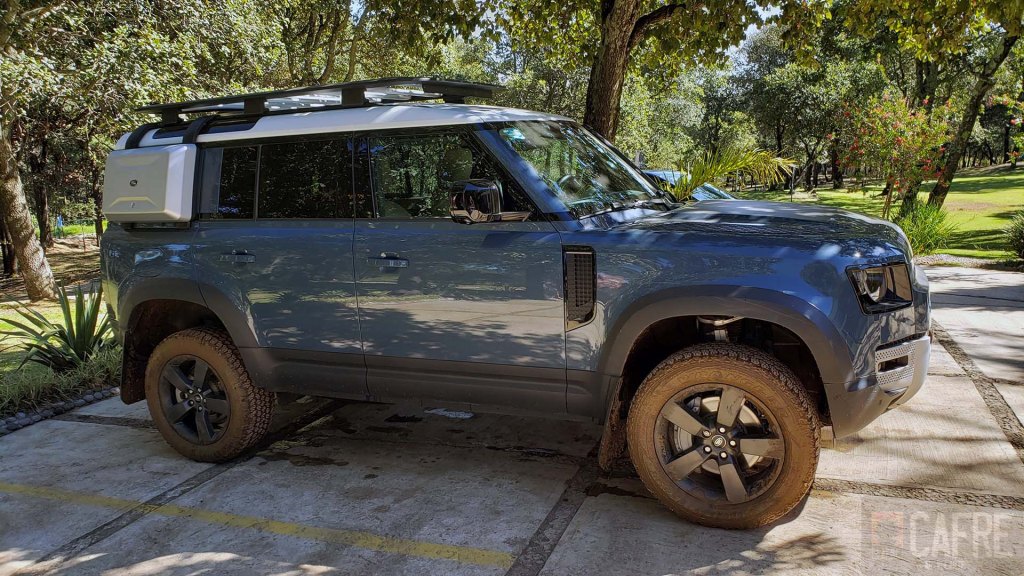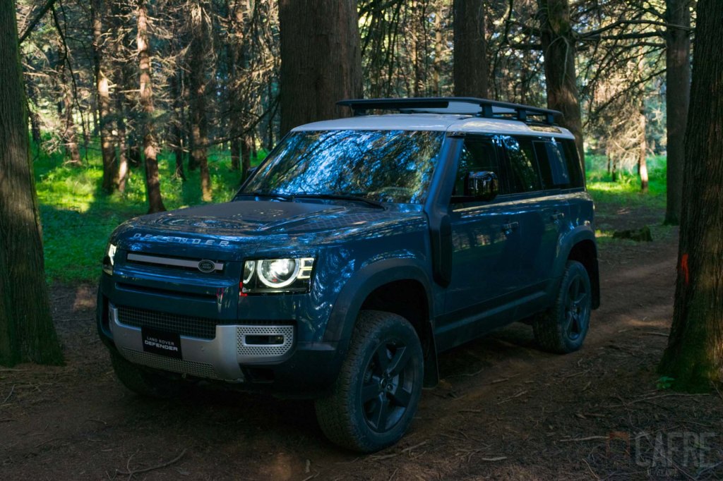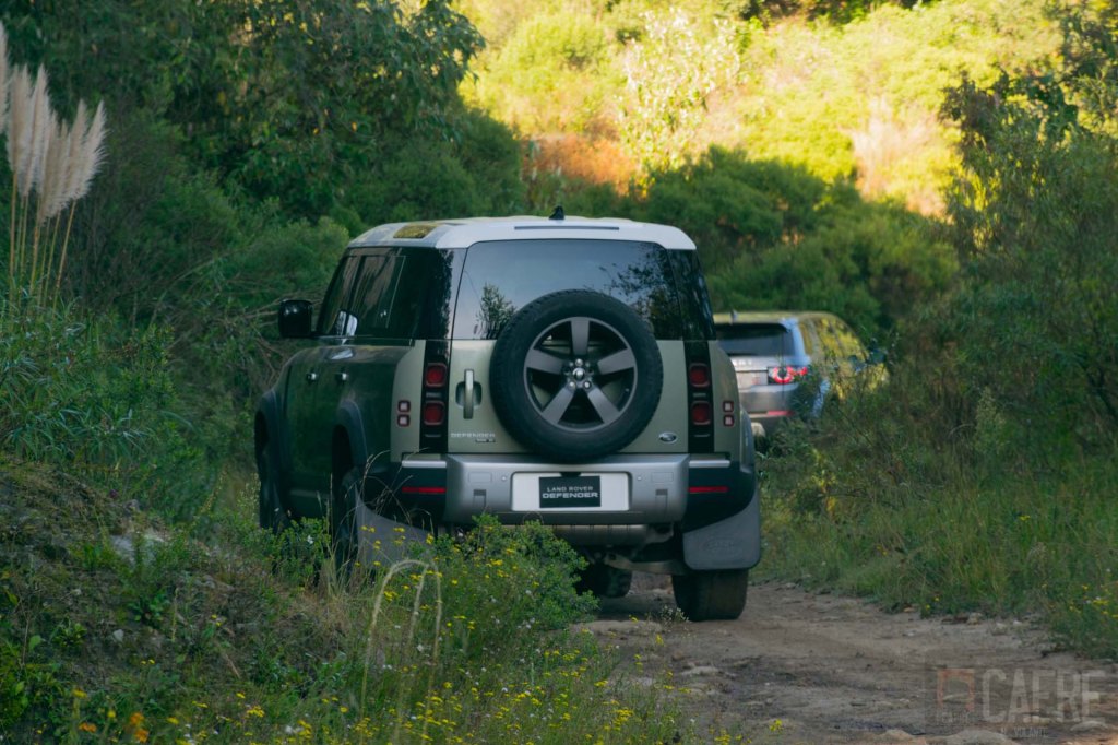 Para la prueba, el grupo de cuatro personas se dividió en dos grupos, a mí me toco manejar la versión 110 HSE con el Explorer Pack que incorpora ciertos detalles como el respirador superior, el portaequipaje lateral, la canastilla superior, salpicaderas más anchas para evitar dañar la carrocería del Defender.