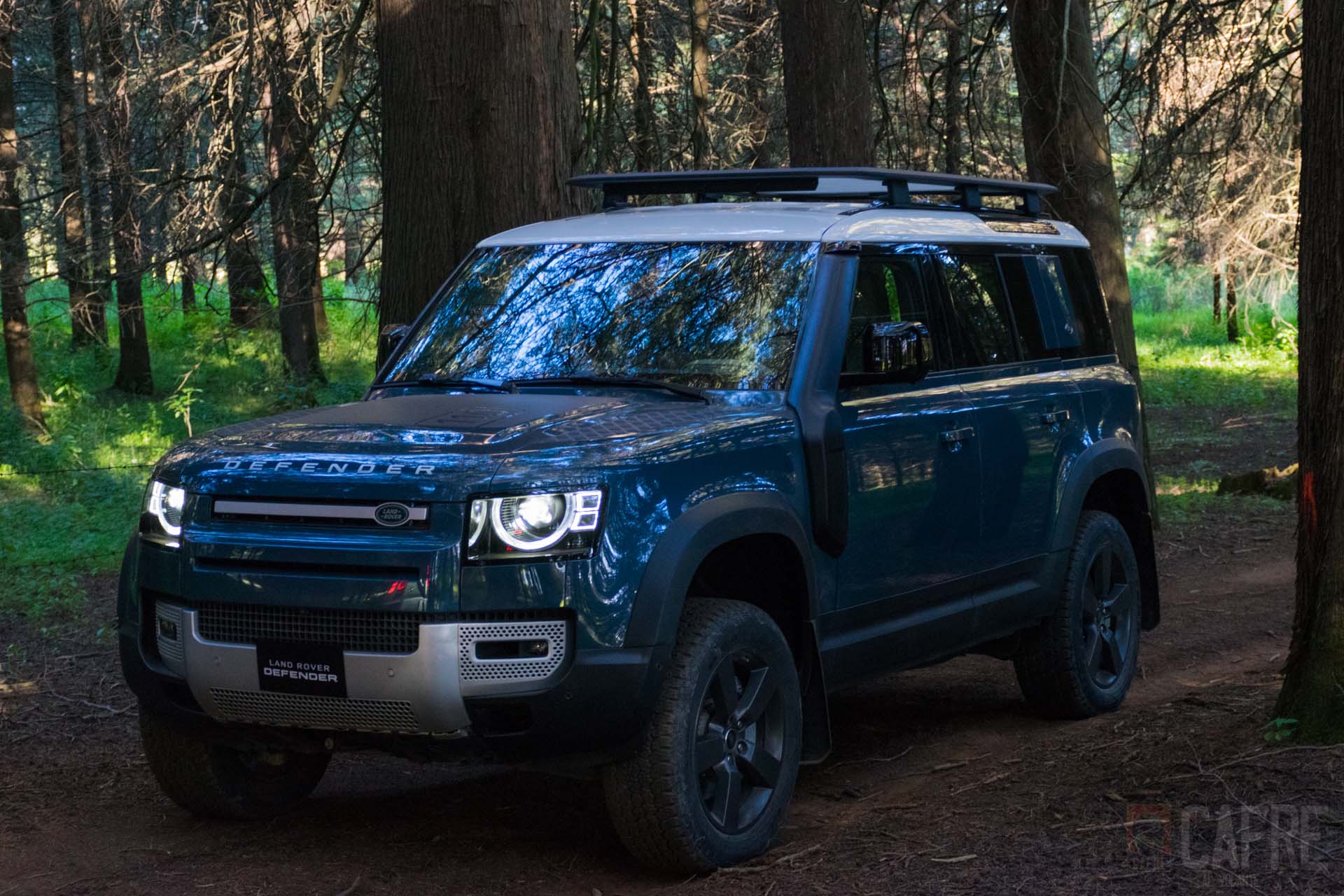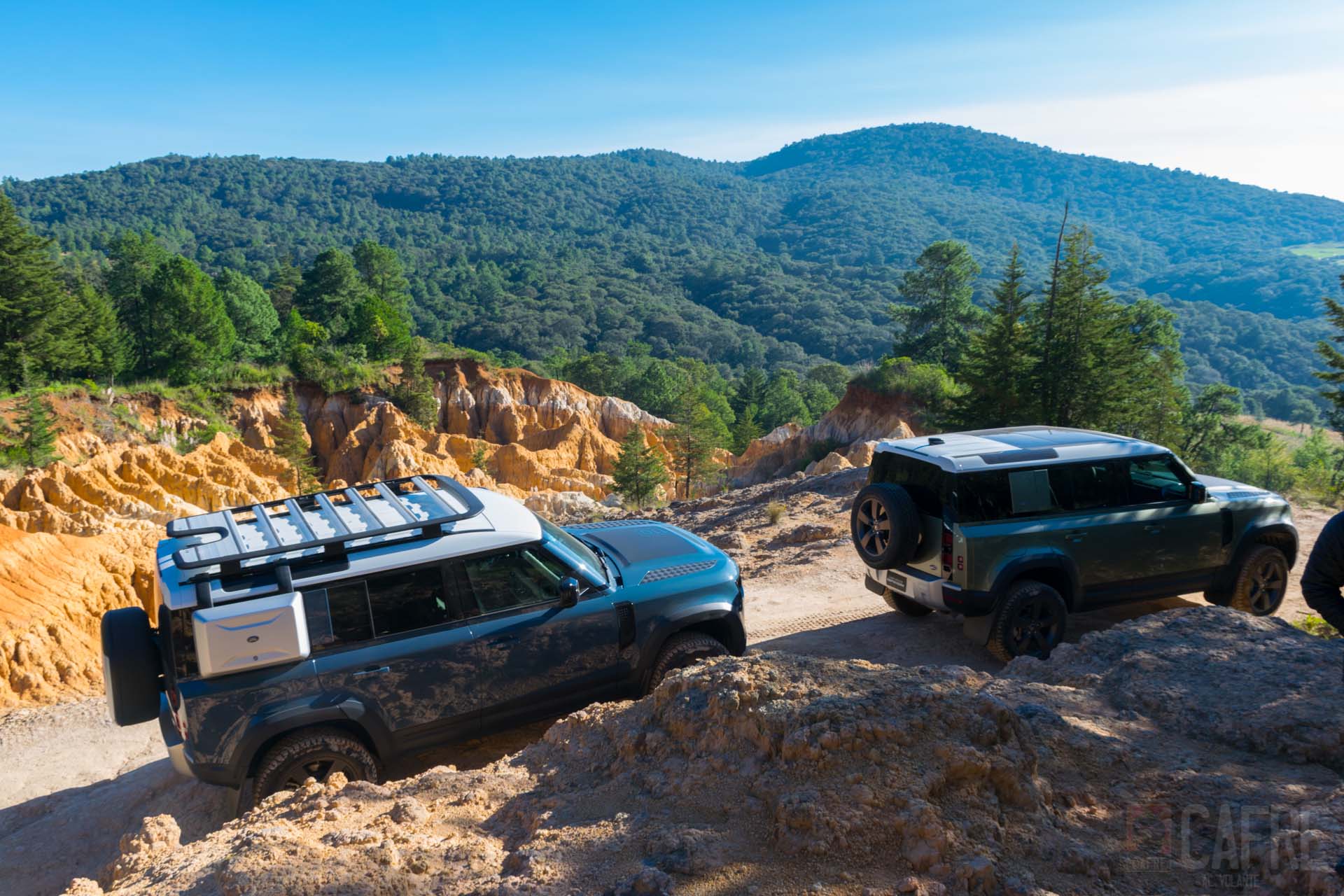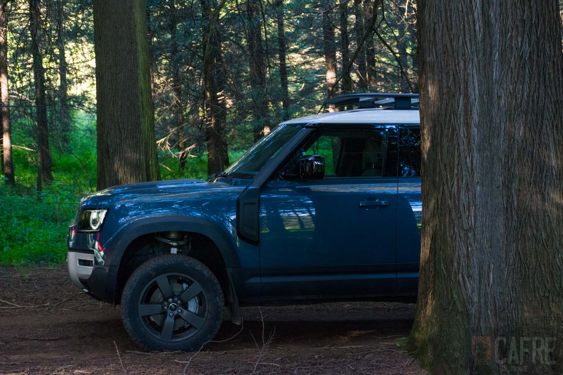Para la prueba, el grupo de cuatro personas se dividió en dos grupos, a mí me toco manejar la versión 110 HSE con el Explorer Pack que incorpora ciertos detalles como el respirador superior, el portaequipaje lateral, la canastilla superior, salpicaderas más anchas para evitar dañar la carrocería del Defender.