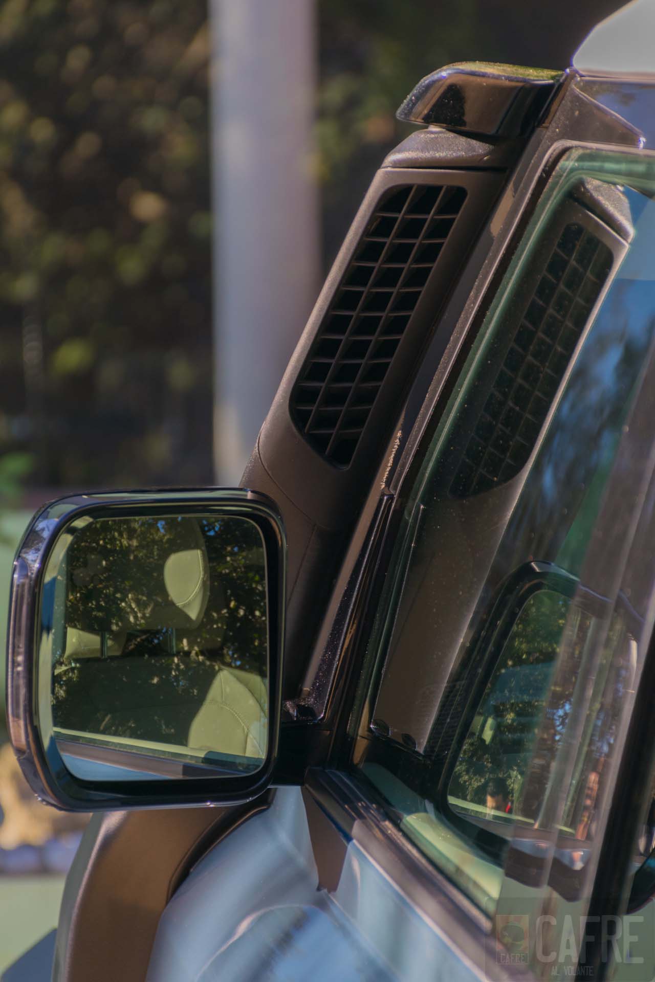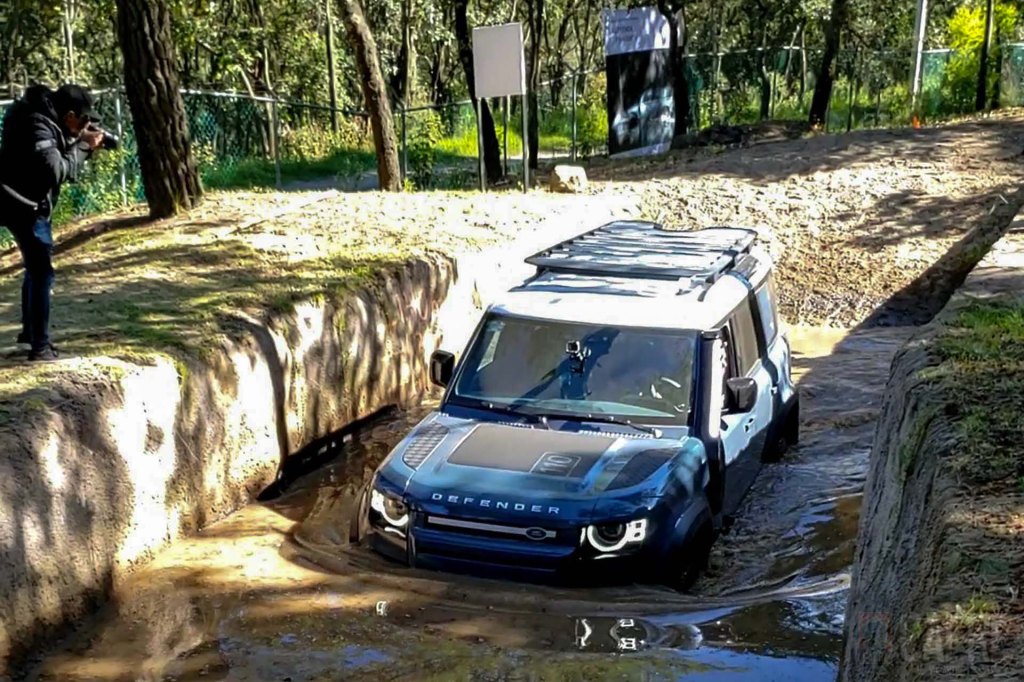 Lo increíble de estas pruebas son las capacidades que tiene el Defender en situaciones más “comunes” (por así decirlo) como fue el vadeo, ya que con una profundidad de 90 cm sumergimos el Defender para cruzar esta prueba sin alguna complicación. Iba a mencionar que con la versión con el Explorer Pack integra una toma de aire superior (el famoso snorkel) colocado estéticamente en el poste del parabrisas (en primera instancia no lo notas), pero Land Rover dice que esta pieza no incrementa las capacidades de vadeo, las ventajas de este accesorio además de poder escuchar como respira el motor al acelerar, te ayuda a aspirar un aire más limpio debido a su diseño con la toma apuntando hacia atrás.