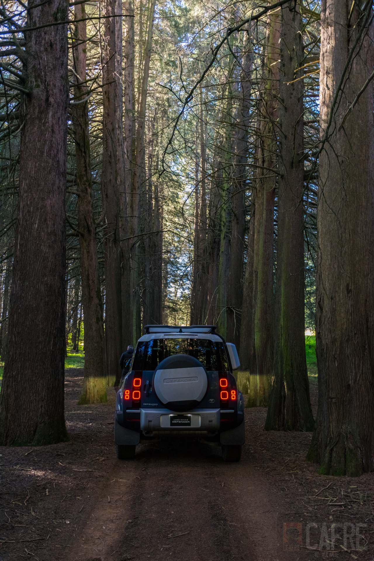 Continuando con la ruta, nos encontramos con tramos estrechos debido a las ramas, en esta parte es donde considerarás incluir la protección a la pintura que ofrece Land Rover de agencia, te ahorrará muchos corajes debido a este tipo condiciones donde expones al Defender). En todo este trayecto, notamos el gran trabajo que hace la suspensión de aire reduciendo notablemente todas las irregularidades del camino, obviamente con todo y esta suspensión, hubo partes que nos hizo sacudir las ideas.