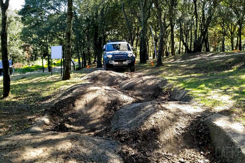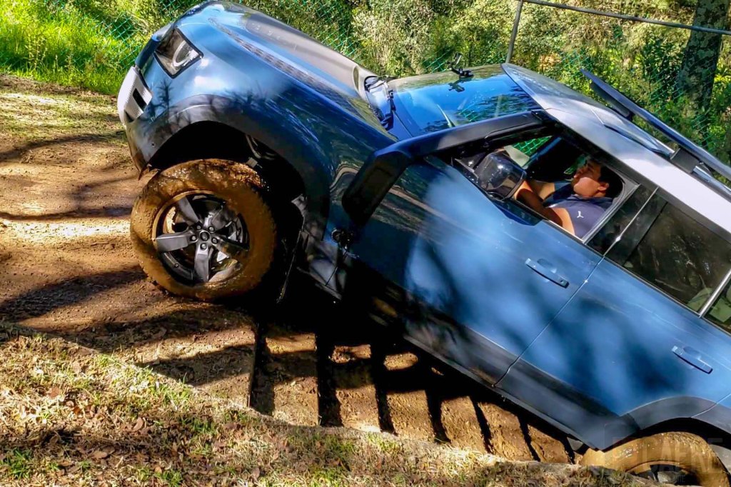 Regresando al parque, fue momento de entrar a la pista de pruebas, en ella tendríamos diversas situaciones (controladas) para poder ver el desempeño todoterreno del Defender. Para este tramo configuramos la suspensión neumática a lo más alto (con el simple hecho de oprimir un botón), también desde la consola activamos el bloqueo del diferencial para tener mayor tracción en las cuatro ruedas.