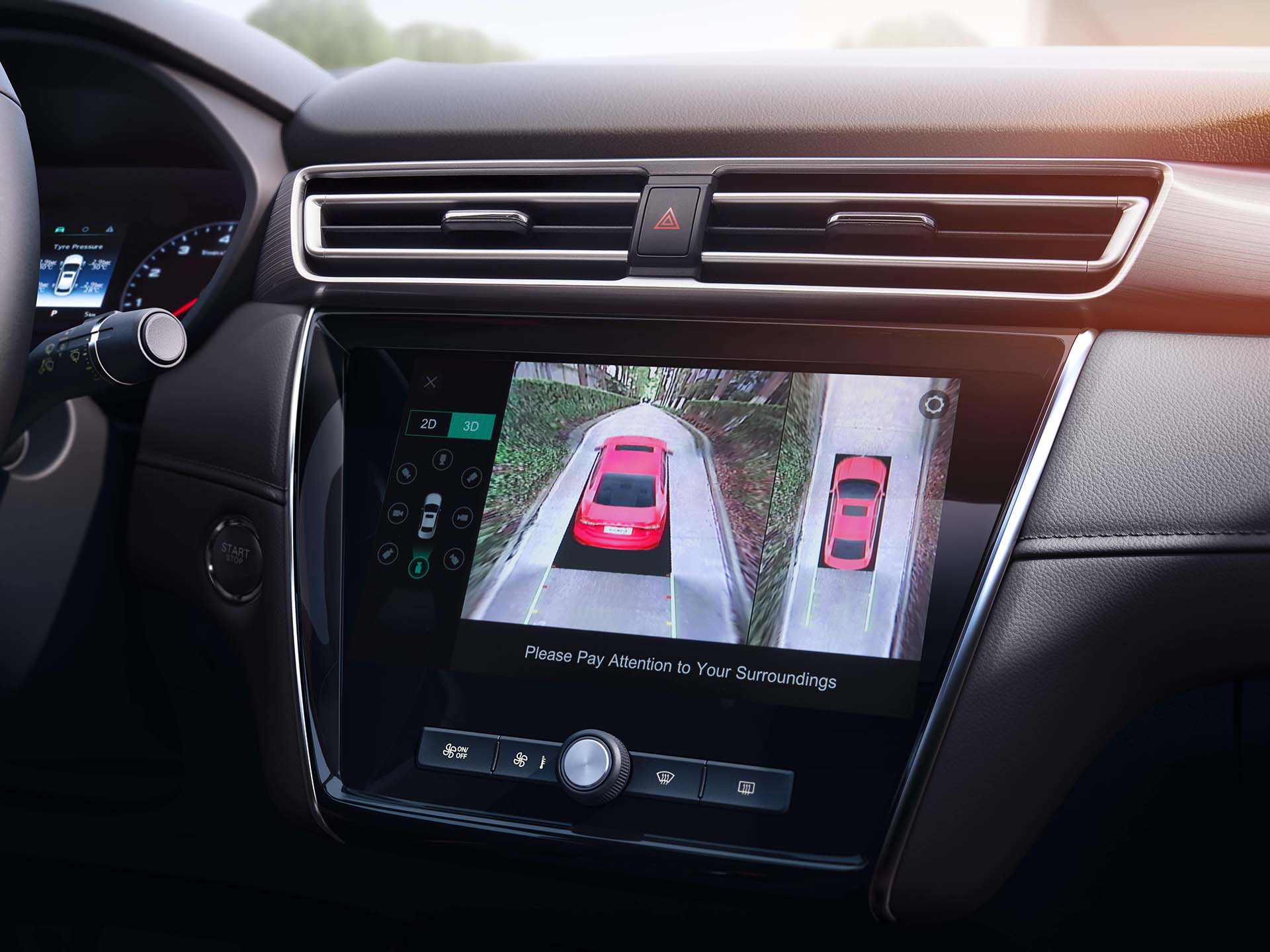 - Cámara de reversa 360° con tecnología 3D en las versiones tope de gama que lo hacen único en su segmento al permitir visualizar en render 3D todo tu entorno, medir tus espacios en centímetros y maniobrar con mayor seguridad tus movimientos.