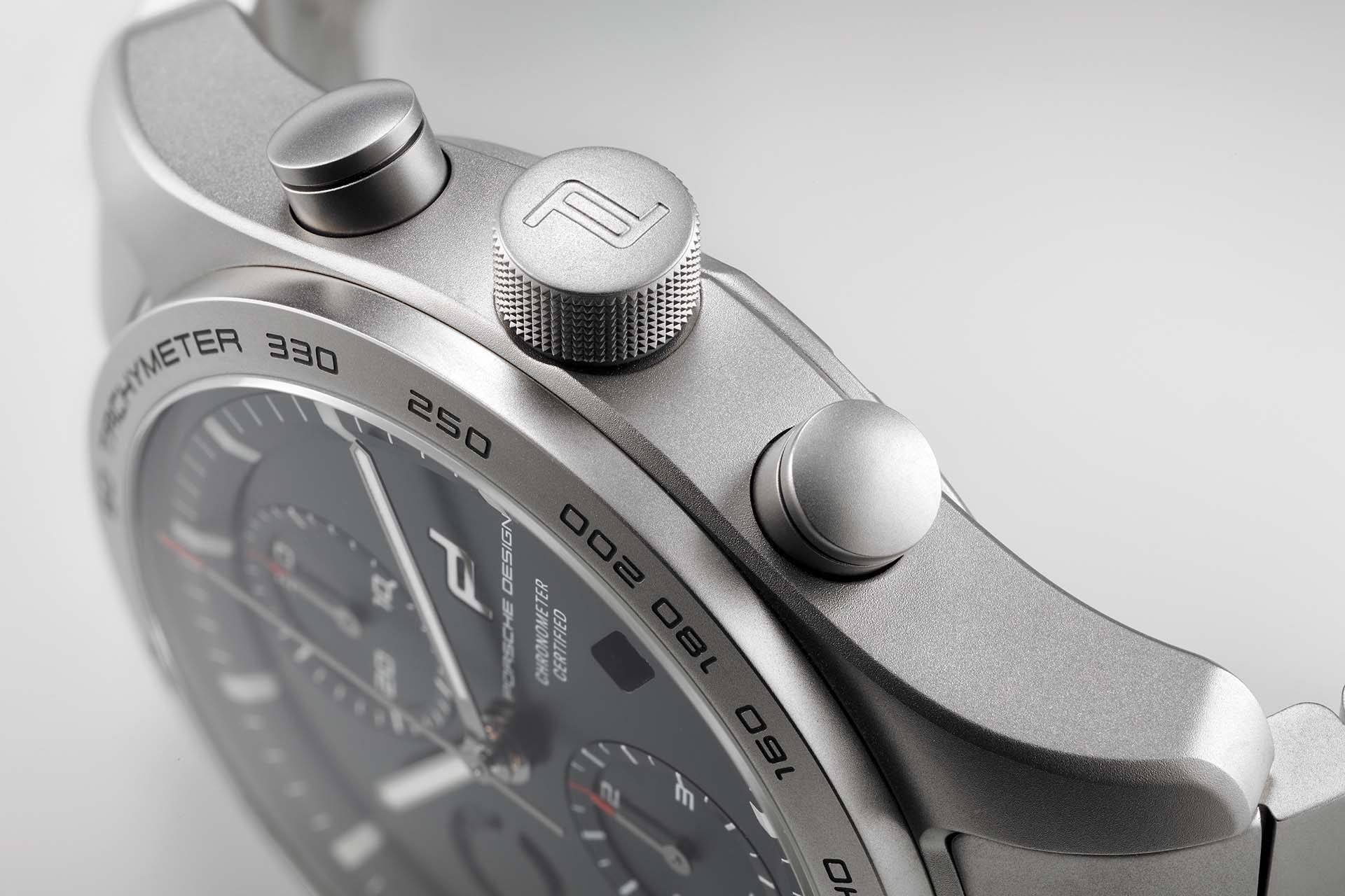 Es por ello que a la hora de configurar un cronógrafo, el cliente empieza definiendo el exterior: primero decide el color de la carcasa que, como en todos los relojes de Porsche Design, es de titanio y tiene un acabado gris mate. En opción se ofrece un recubrimiento distinto en color negro, que automáticamente cambia el color de la hebilla. También se puede configurar el bisel y se puede elegir entre un minutero o un taquímetro. La esfera se presenta, como en algunos cuentarrevoluciones de Porsche, en blanco y negro, y la manecilla es triple. Por su parte, el anillo que rodea la esfera puede configurarse en todos los colores de los vehículos de serie de Porsche, y las correas de cuero están disponibles en todos los colores de los interiores.