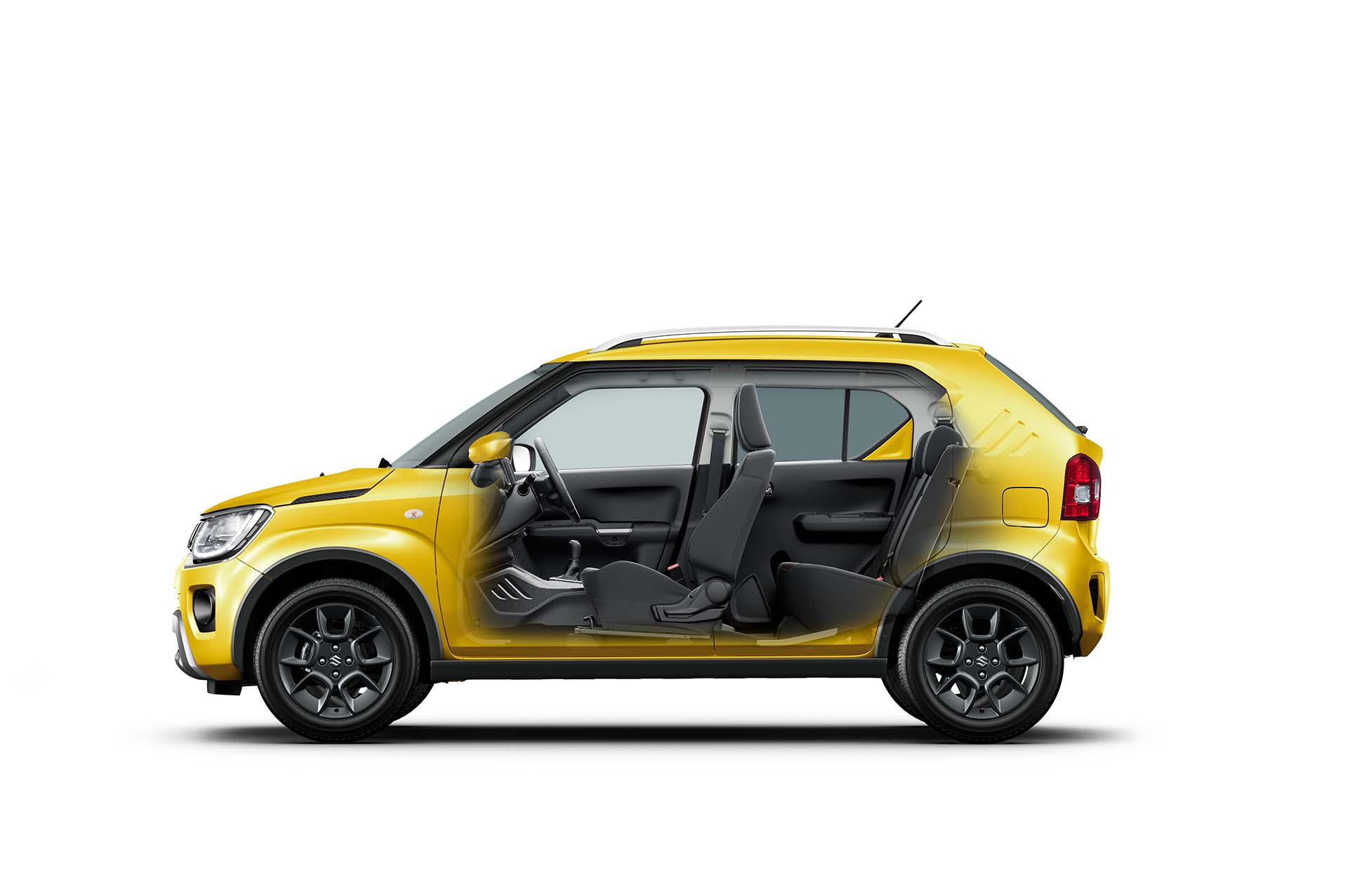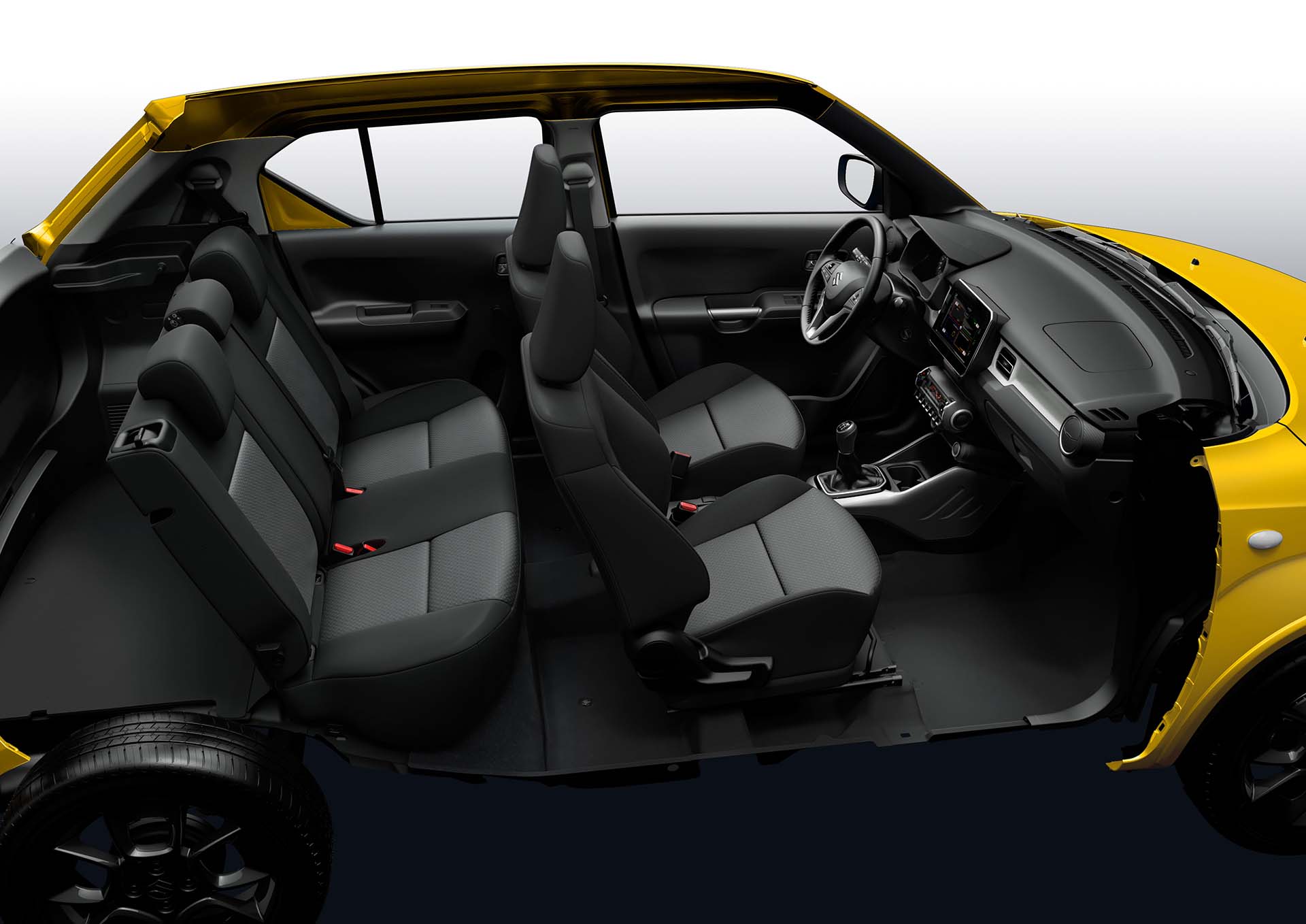 El motor de 4 cilindros de Ignis 2021 ofrece un redimiento de 21.8 km/l, potencia de 82 HP @ 6,000 rpm y torque de 82 lb/pie @4,200 rpm, con una caja CVT. En el diseño exterior de Ignis se puede apreciar una nueva parrilla multivsel que le brinda mayor fortaleza al frente, un nuevo diseño de fascia trasera con skid plate que lo vuelve más robusto y agresivo, faros de proyección led, faros de niebla; rieles de carga totalmente funcionales; cantoneras en salpicaderas que brindan un estilo más robusto al vehículo y que ayudan a darle mayor durabilidad a la pintura. El exterior es bitono: Amarillo Solar con techo color negro.