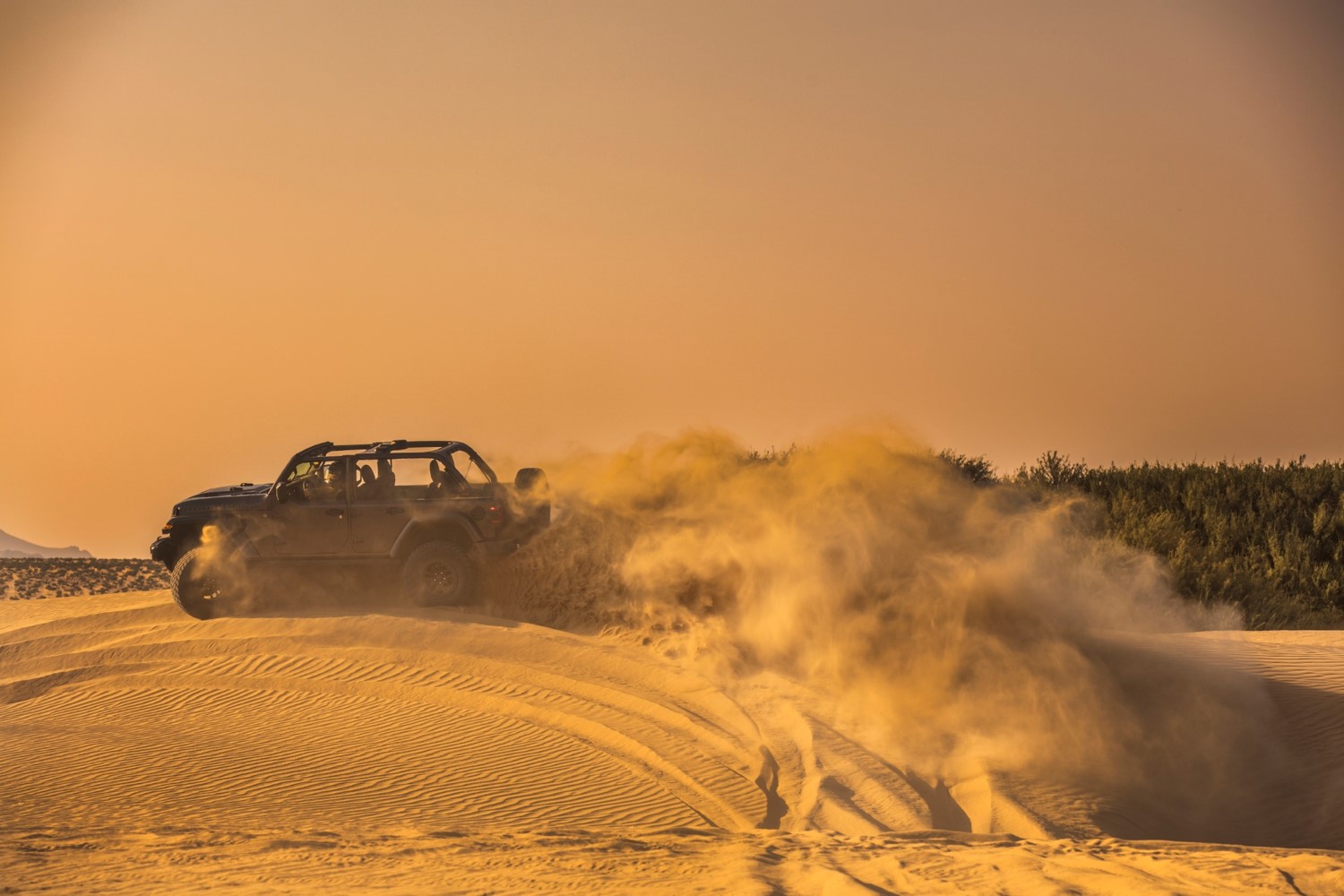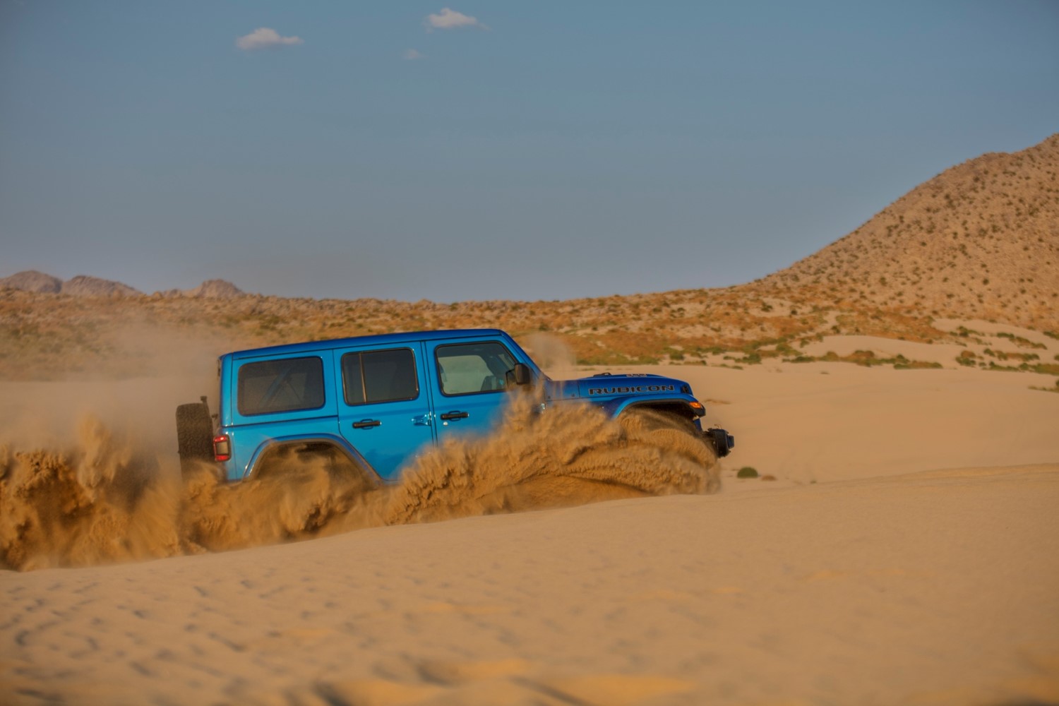 El resultado es el Jeep Wrangler más capaz de la historia gracias a sus 10.3 pulgadas de altura libre al suelo, una articulación de la suspensión y maniobrabilidad mejoradas, ángulos de aproximación, ventral y de salida de 44.5°, 22.6° y 37.5°, respectivamente, y la posibilidad de atravesar masas de agua de hasta 32.5 pulgadas de profundidad.