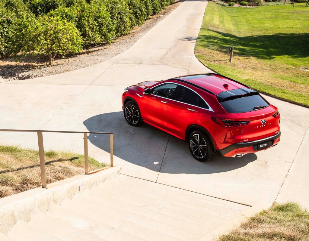 El QX55 estará disponible en ocho colores exteriores: Dynamic Sunstone Red, Slate Gray, Majestic White, Liquid Platinum, Graphite Shadow, Mineral Black, Black Obsidian y Hermosa Blue.